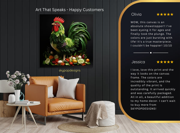 Keywords: Rooster Wall Art, Vegetable Rooster, Nature Art, Folk Art, Whimsical Art, Farmhouse Decor, Rustic Decor, Country Decor, Kitchen Art, Dining Room Art, Living Room Art, Entryway Decor, Green Art, Multicolor Art, Red Art, Yellow Art, Garden Art, Farm Decor, Foodie Gift, Gardener Gift, Housewarming Gift, Birthday Gift, Canvas Wall Art, Canvas Print, Vegetable Art, Animal Art, Unique Wall Art, Home Decor, Culinary Art