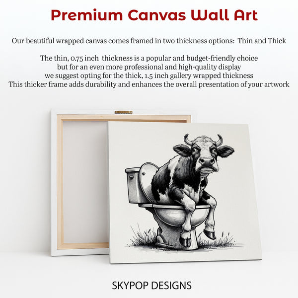 Bring a touch of humor and conversation to your home with this unique cow on toilet canvas wall art. This striking black and white print features a Highland cow in a comical pose, instantly transforming any space into a fun and inviting area. Perfect for modern and contemporary decor styles, this piece adds personality to your bathroom, living room, or even a game room. The detailed sketch work on this poster makes it a standout piece of animal art, guaranteed to get a chuckle. It's an ideal canvas wall art for those who appreciate quirky and unconventional decor. This humorous artwork celebrates the unexpected and brings a lighthearted vibe to your daily life. Showcase your unique style with this eye-catching poster, perfect for a farmhouse kitchen or a modern entryway. This versatile wall art is a great gift for housewarmings, birthdays, or holidays for anyone with a sense of humor. Elevate your home decor with this incredibly detailed and captivating cow canvas art. Make your walls a talking point with this unforgettable Highland cow artwork. This poster or canvas wall art is sure to add charm and character. Embrace the unexpected and transform your space with this hilarious cow canvas print today.