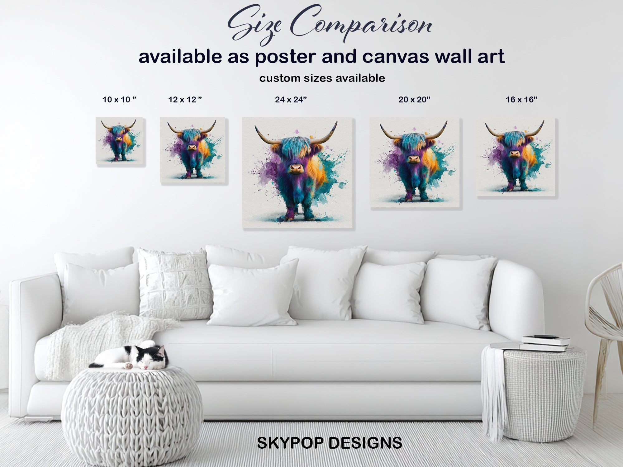 Keywords: Highland Cow Art, Canvas Wall Art, Pop Art Decor, Animal Wall Art, Graffiti Style, Bohemian Decor, Modern Art, Contemporary Art, Living Room Art, Bedroom Art, Entryway Decor, Office Wall Art, Multicolor Art, Teal Wall Art, Purple Wall Art, Orange Art, Splash Art, Colorful Highland Cow, Abstract Animal Art, Unique Wall Decor, Home Decor Art, Art Poster, Vibrant Wall Art, Whimsical Art, Gift for Animal Lovers, Housewarming Gift, Birthday Gift, Statement Art, Artistic Design, Modern Home