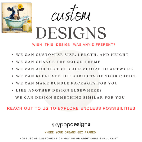 Looking for a custom design, or do you love a particular design but need it in a different size or orientation? Perhaps you've found a design elsewhere and wish for us to create something similar for you? Drop us a message! We're dedicated to meeting your needs and will work closely with you to ensure your vision comes to life.