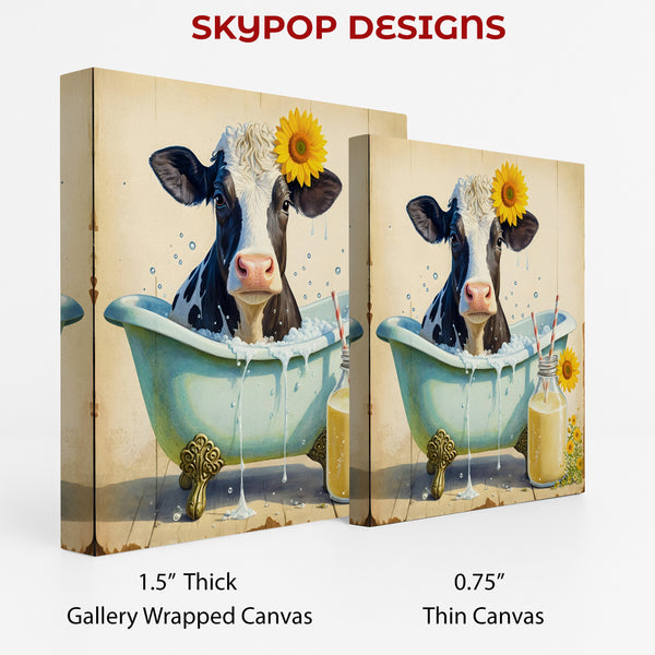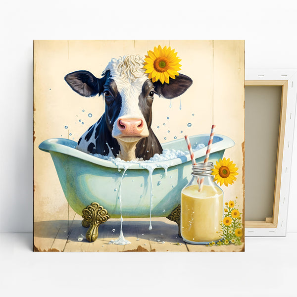 Transform your space with this charming cow canvas wall art, perfect for those who love a touch of whimsy. This delightful poster showcases a highland cow taking a bubble bath, complete with a sunflower accent and a refreshing drink, bringing a smile to your face. The vibrant yellow sunflowers and creamy bubbles create a sense of fun and relaxation, making this canvas wall art a statement piece for any room. It’s ideal for farmhouse decor, adding a playful yet cozy element to your kitchen or bathroom. The striking imagery and warm colors of this poster also fit beautifully into bohemian or modern living room settings. This unique artwork celebrates the simple joys of life and adds a cheerful atmosphere to your home. Whether you're looking for a humorous piece for your bathroom or a conversation starter for your living room, this canvas art delivers. It makes a wonderful gift for birthdays, housewarmings, or any occasion for animal lovers who appreciate distinctive wall decor. The high-quality printing ensures the details of the cow's expression and the bubbly bath are captured vividly. Elevate your home's aesthetic with this captivating cow artwork today. Bring joy and personality to your walls with this unique and heartwarming piece of canvas wall art.
