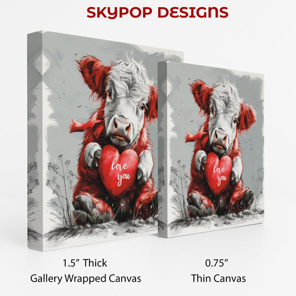 Transform your space with this captivating Highland Cow canvas wall art, a heartwarming piece that radiates love and charm. This unique poster showcases a fluffy Highland Cow gently hugging a bright red heart, making it a perfect addition for Valentine's Day decor or any time you want to spread joy. The striking combination of red and white with grey background elements creates a vibrant yet soothing visual that will elevate any room, from a cozy bedroom to a lively children's room. This piece is ideal for farmhouse or bohemian decor styles, adding a touch of whimsy and affection. The artistic style, reminiscent of graffiti art, gives this canvas a modern and edgy feel, while the subject matter remains undeniably sweet. It’s a fantastic gift for anyone who loves cows, animals, or simply wants to brighten their living room decor. The quality printing on this canvas wall art ensures every detail is captured, from the cow's soft texture to the bold declaration on the heart. Enhance your home with this stunning wall art that speaks volumes of love and warmth. Bring a smile to your face every day with this delightful Highland Cow poster. This versatile artwork is a wonderful way to celebrate affection and add personality to your home. Elevate your wall decor with this unforgettable piece today and feel the love.