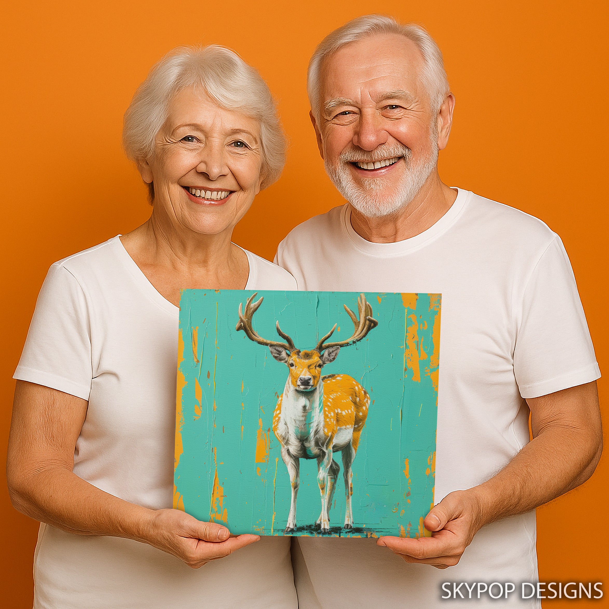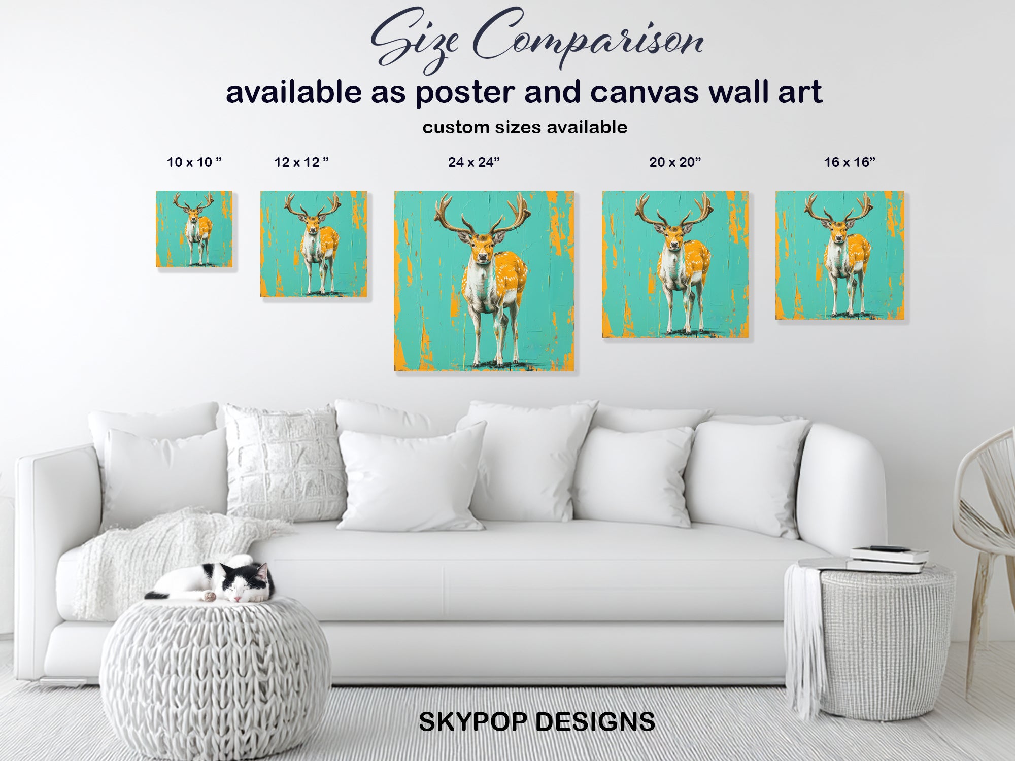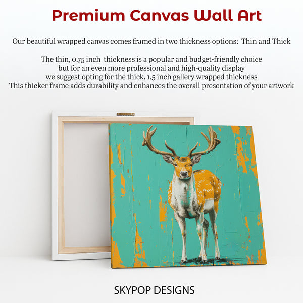 Keywords: Majestic Stag Canvas Art, Contemporary Art, Nature Art, Animal Art, Modern Decor, Minimalist Decor, Living Room Art, Bedroom Wall Art, Entryway Decor, Office Wall Art, Teal Canvas Art, Yellow and Brown Art, Multicolor Wall Art, Deer Poster, Stag Artwork, Nature Inspired Decor, Contemporary Design, Textured Canvas, Handmade Feel Art, Sophisticated Decor, Statement Piece Art, Calm Home Decor, Outdoor Connection Art, Nature Lover Gift, Housewarming Present, Vibrant Wall Art, Detailed Deer Art, Conversation Starter Art, Eye-catching Poster, Home Environment Enhancement