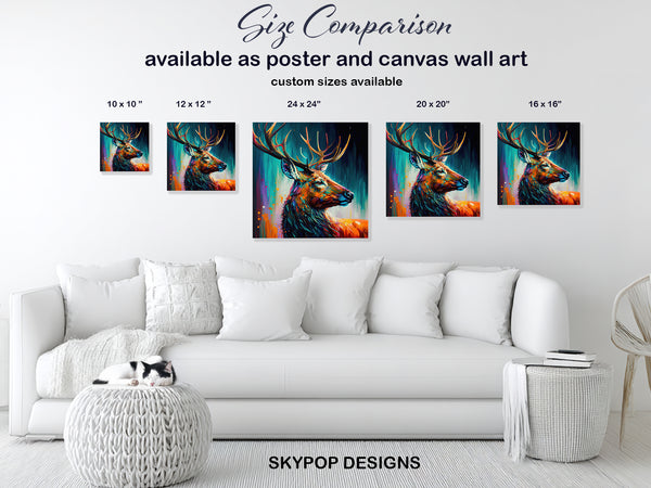 Deer Spirit Art, Canvas or Poster, Abstract Animal Decor, Living Room Bedroom Wall Art, Multicolor Blue Orange Teal Canvas Print