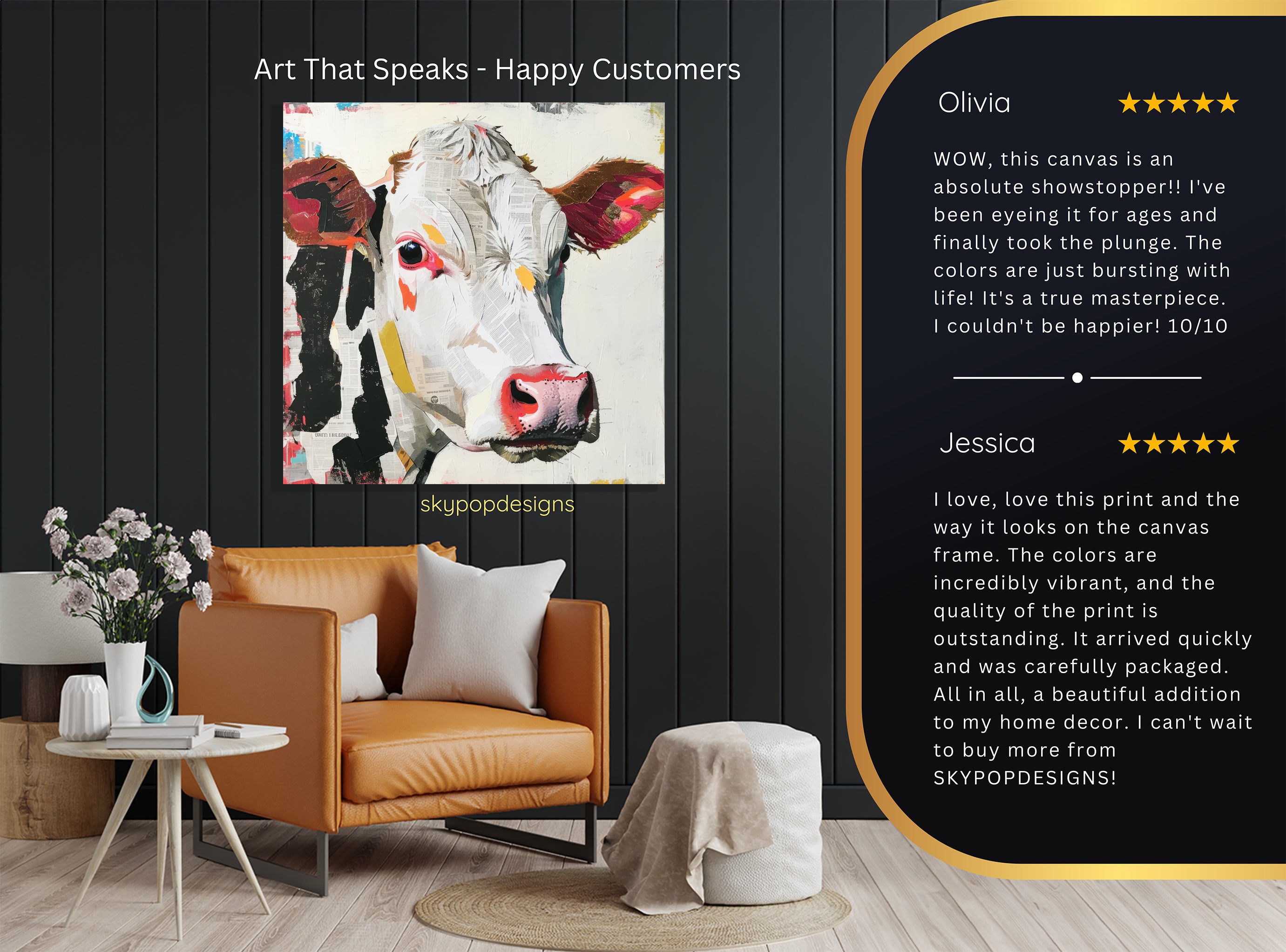 At SKYPOPDESIGNS, we specialize in high-quality canvas and poster prints designed to bring sophistication and style to your space. Please note that our designs are not created with 3D textures or as original oil, acrylic, or watercolor paintings; they are instead HD reproductions of original artwork. This approach allows us to offer these visually stunning pieces at competitive prices, ensuring you receive top-tier, maintenance-free art that's easy to enjoy.