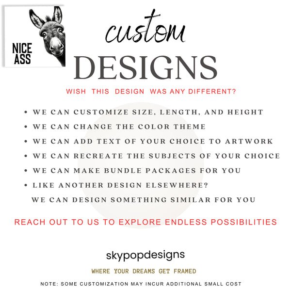 Looking for a custom design, or do you love a particular design but need it in a different size or orientation? Perhaps you've found a design elsewhere and wish for us to create something similar for you? Drop us a message! We're dedicated to meeting your needs and will work closely with you to ensure your vision comes to life.