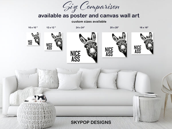 Keywords: Donkey Art, Funny Wall Art, Nice Ass Poster, Canvas Print, Modern Decor, Minimalist Art, Bohemian Style, Graffiti Art, Pop Art, Contemporary Art, Black and White Art, Multicolor Art, Living Room Art, Office Decor, Game Room Art, Entryway Art, Animal Art, Humorous Art, Unique Wall Decor, Statement Piece, Conversation Starter, Highland Cow Print, Farmhouse Decor, Animal Lover Gift, Birthday Gift Idea, Housewarming Gift, High Contrast Art, Linework Art, Whimsical Art, Joyful Decor