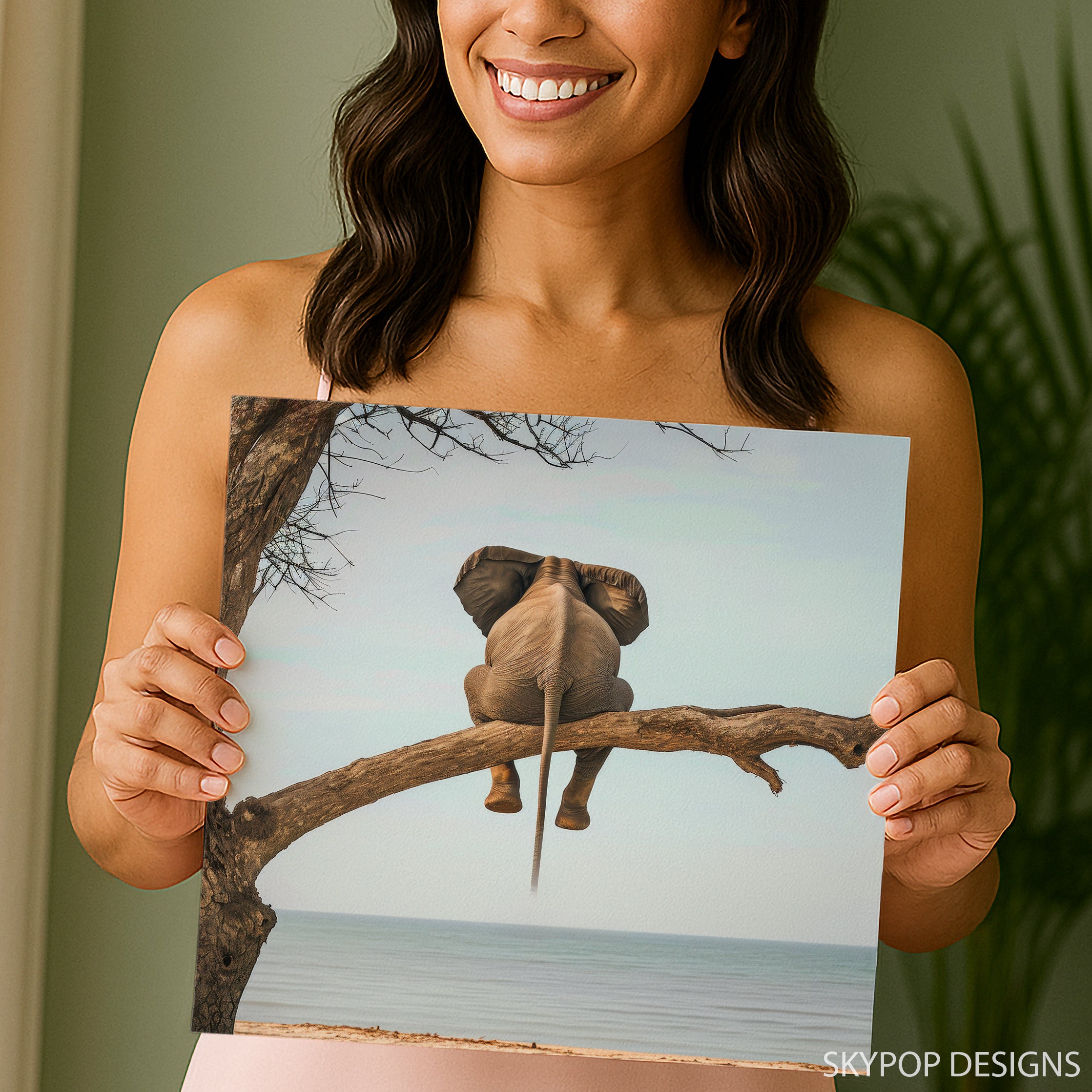 Transform your space into a serene coastal dreaming with this captivating elephant canvas wall art, featuring an elephant perched on a tree branch overlooking the ocean. This unique poster showcases an elephant in an unexpected, whimsical setting, bringing a touch of calm and wonder to your home. The striking contrast between the earthy tones of the elephant and tree with the cool blues and beiges of the ocean creates a visually stunning piece that will be a conversation starter. This canvas wall art is perfect for adding a touch of nature art to your living room or creating a tranquil atmosphere in your bedroom. Its bohemian and rustic decor styles blend seamlessly, making it ideal for those who love unique animal art. The subtle color palette of browns, teals, and beiges creates a soothing and peaceful ambiance, evoking feelings of calm and relaxation. Whether you're looking to elevate your coastal-themed decor or simply seeking a charming piece of animal art, this canvas print delivers. It also serves as an excellent gift for elephant lovers, nature enthusiasts, or for housewarmings and birthdays. High-quality printing ensures the intricate details of the elephant's skin and the soft texture of the ocean are beautifully captured. This versatile wall art, available in various sizes, is designed to enhance any room, from your entryway to a cozy sunroom. Embrace the charm and tranquility of this one-of-a-kind elephant poster and let it inspire your day. Make this breathtaking piece the focal point of your wall decor.