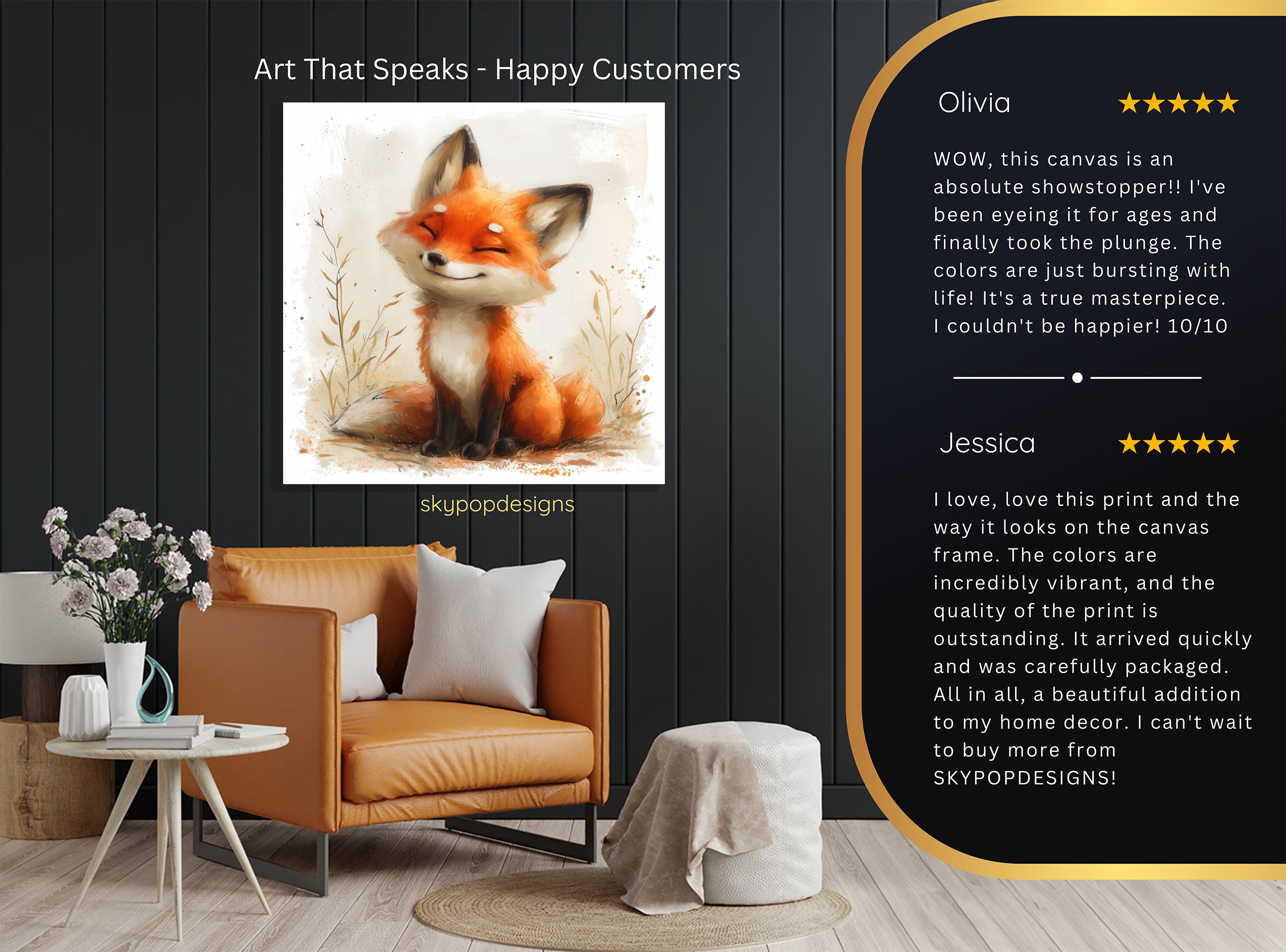Keywords: Fox Wall Art, Animal Art, Nature Art, Whimsical Art, Bohemian Decor, Farmhouse Decor, Rustic Decor, Living Room Art, Bedroom Art, Nursery Art, Kids Room Art, Beige Art, Brown Art, Orange Art, Multicolor Art, Fox Poster, Smiling Fox Art, Meadow Art, Woodland Creatures, Animal Lover Gift, Birthday Gift, Housewarming Gift, Holiday Gift, Home Decor, Canvas Wall Art, Joyful Art, Mood Boosting Art, Watercolor Fox, Interior Design, Country Decor
