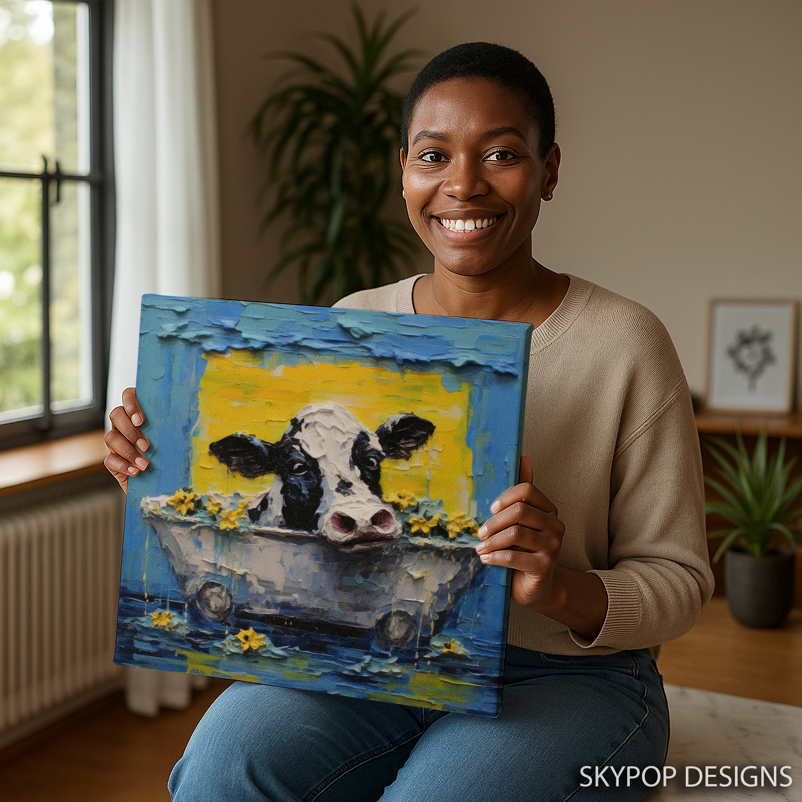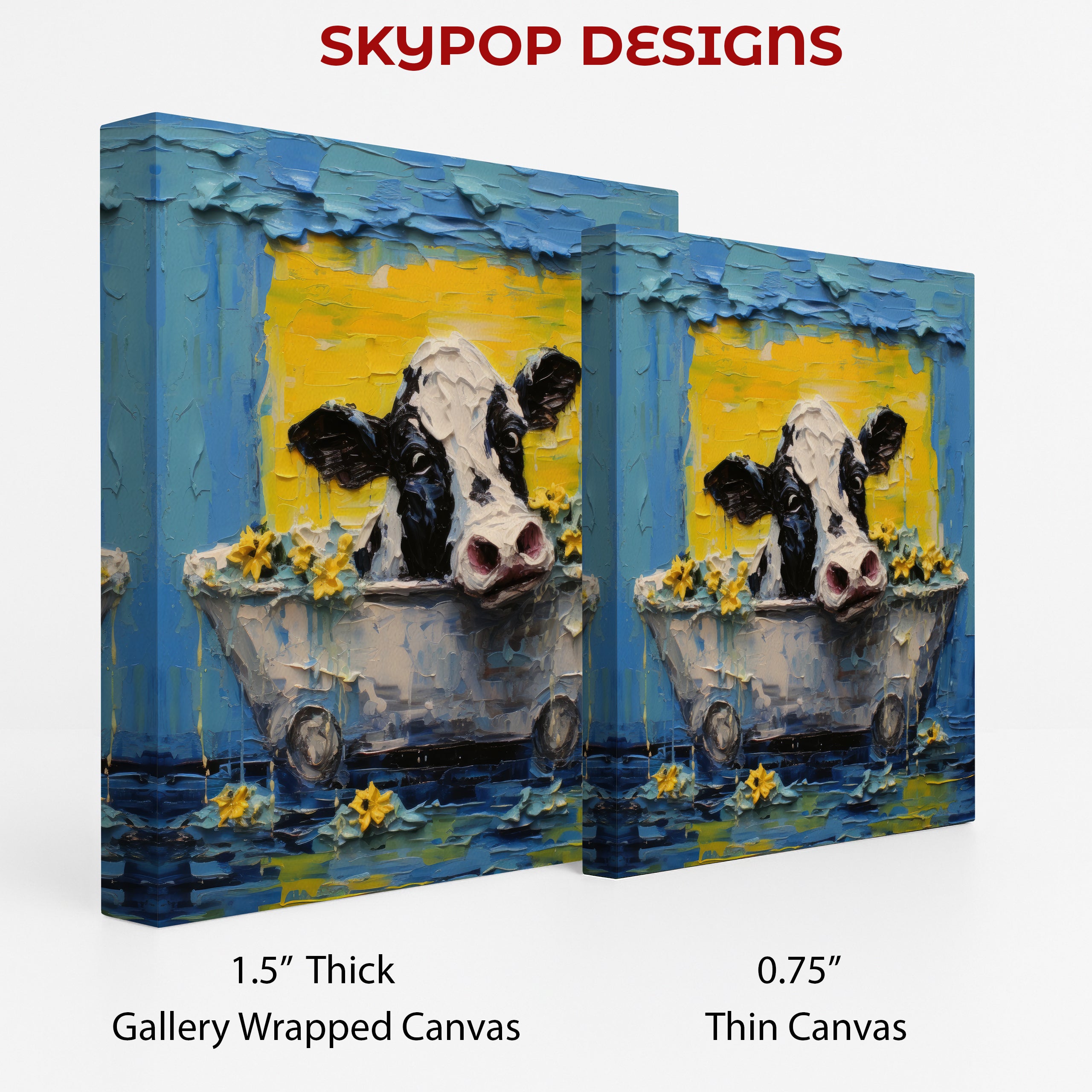 Keywords: Highland Cow Art, Canvas Wall Art, Animal Art, Whimsical Art, Contemporary Art, Bohemian Decor, Modern Decor, Farmhouse Decor, Living Room Art, Bathroom Art, Bedroom Art, Children's Room Art, Blue Yellow Art, White Black Art, Highland Cow Bath, Animal Wall Art, Home Decor, Wall Art, Poster Art, Art Print, Unique Wall Decor, Statement Art, Interior Design, Gift for Cow Lover, Housewarming Gift, Birthday Gift, Holiday Gift, Joyful Art, Cheerful Decor, Textured Art