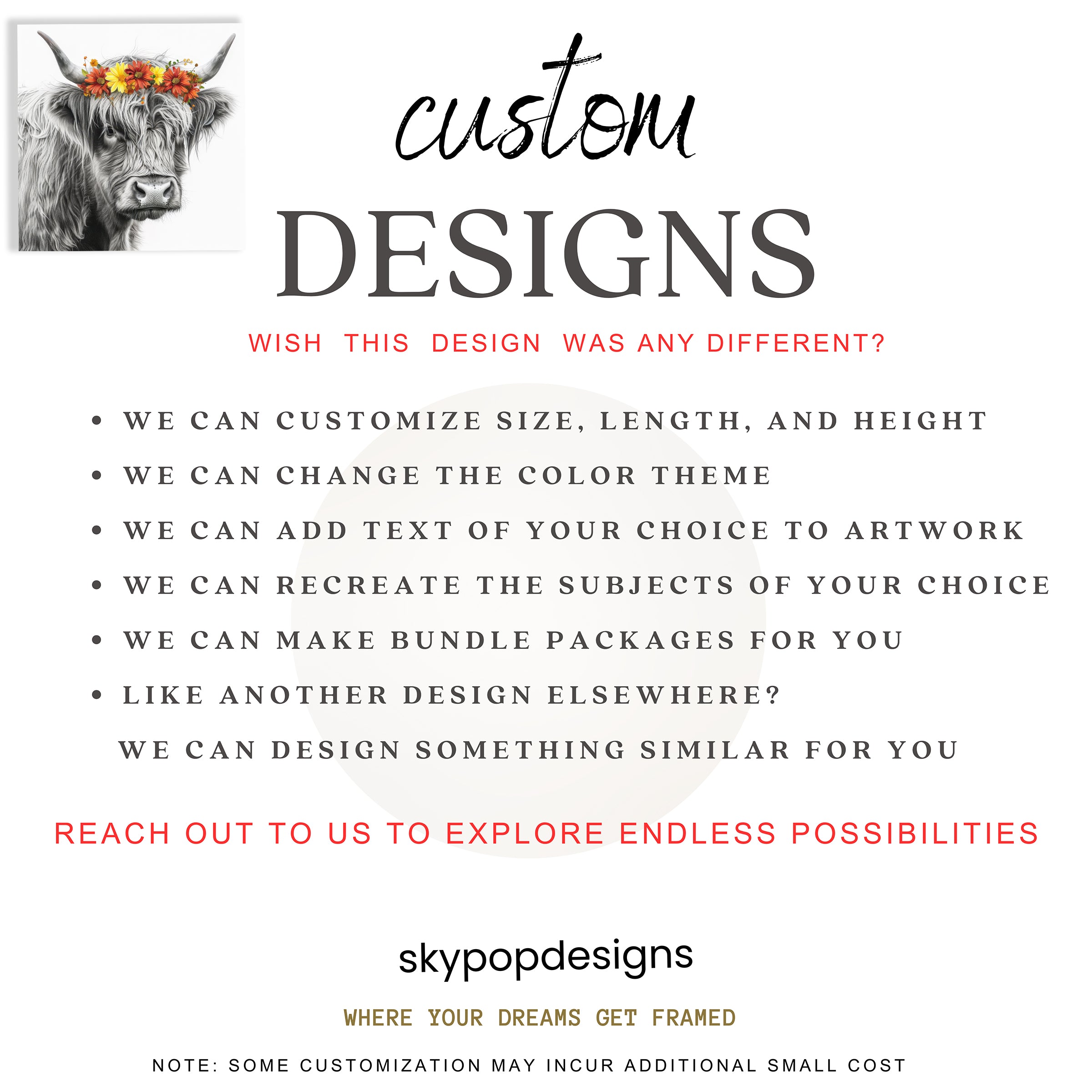 Looking for a custom design, or do you love a particular design but need it in a different size or orientation? Perhaps you've found a design elsewhere and wish for us to create something similar for you? Drop us a message! We're dedicated to meeting your needs and will work closely with you to ensure your vision comes to life.