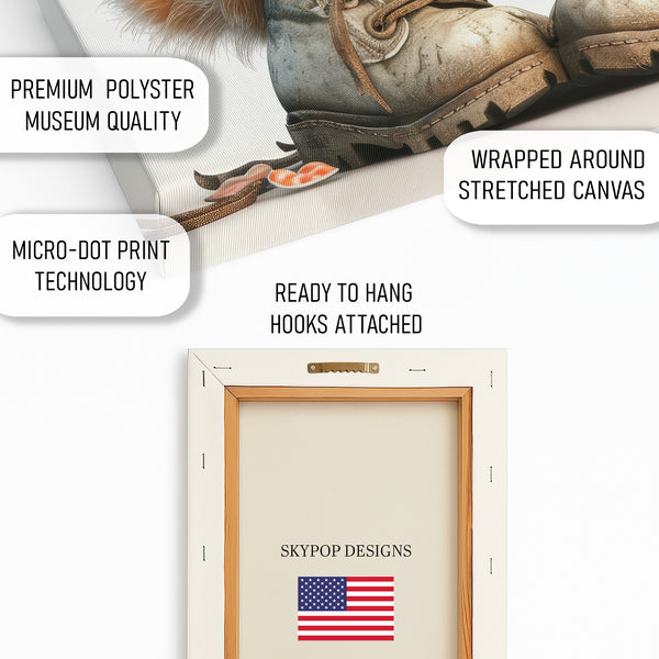 Keywords: Kitten Canvas Art, Animal Wall Art, Whimsical Art, Cat Lover Gift, Rustic Home Decor, Farmhouse Bedroom Art, Bohemian Living Room, Nursery Wall Decor, Multicolor Art Print, Brown and White Art, Cute Kitten Poster, Love Boots Art, Pet Wall Decor, Cozy Atmosphere, Heartwarming Art, Sentimental Gifts, Children's Room Decor, Playful Charm, Housewarming Gift, Contemporary Art, Animal Companionship, Soft Colors Art, High-Quality Canvas, Unique Wall Art, Blissful Moments, Adorable Art, Romantic Art, Pet Portrait, Sweet Sentiment, Joyful Decor