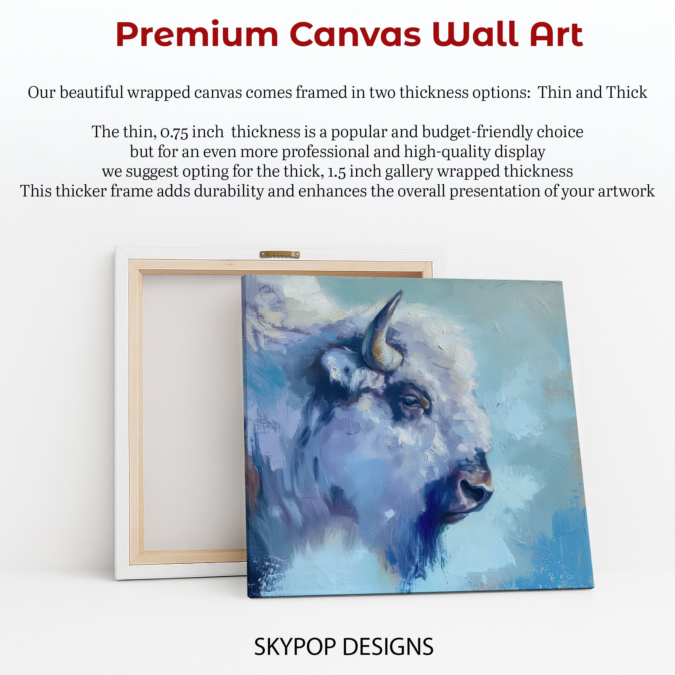 Bison Art, Canvas or Poster, Modern Rustic Nature Decor, Living Room Bedroom Entryway Office Wall Art, Blue White Grey Multicolor