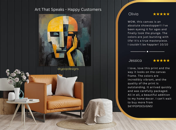 Keywords: Abstract Art, Canvas Wall Art, Geometric Face Art, Modern Decor, Minimalist Art, Contemporary Art, Living Room Art, Office Decor, Bedroom Art, Entryway Decor, Yellow and Grey Art, Multicolor Art, Black Wall Art, Figurative Art, Thoughtful Art, Geometric Design, Bold Colors, Wall Poster, Home Decor, Interior Design, Unique Art, Abstract Portrait, Artistic Expression, Intellectual Art, Inspirational Art, Gift for Home, Birthday Gift, Housewarming Gift, Modern Art Print, Statement Piece