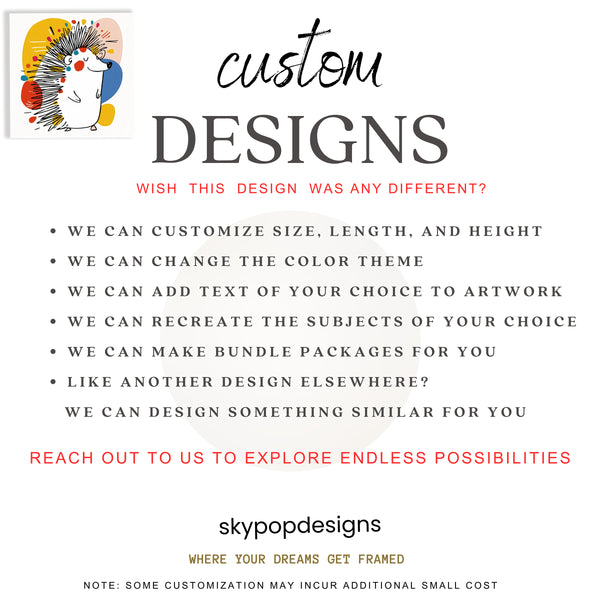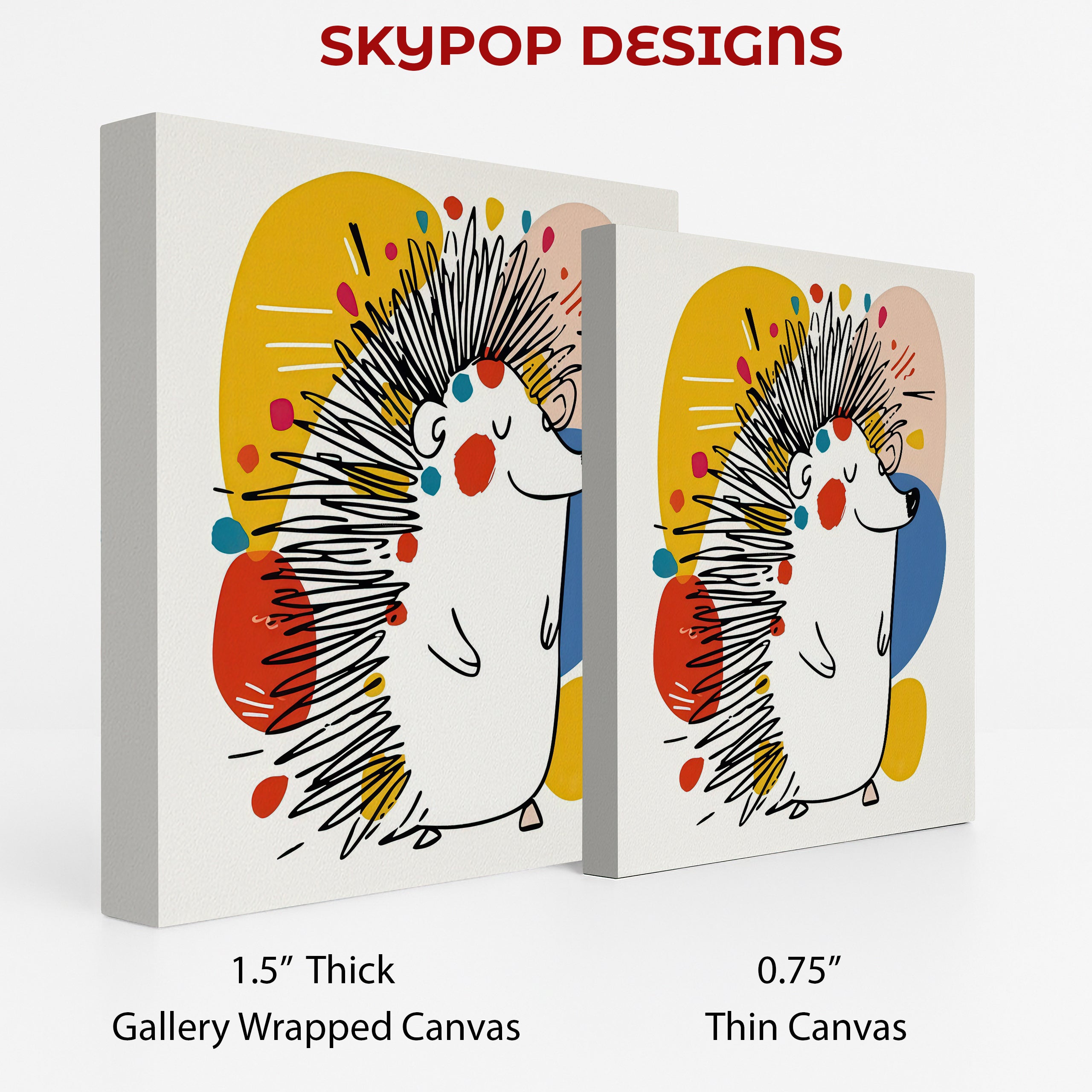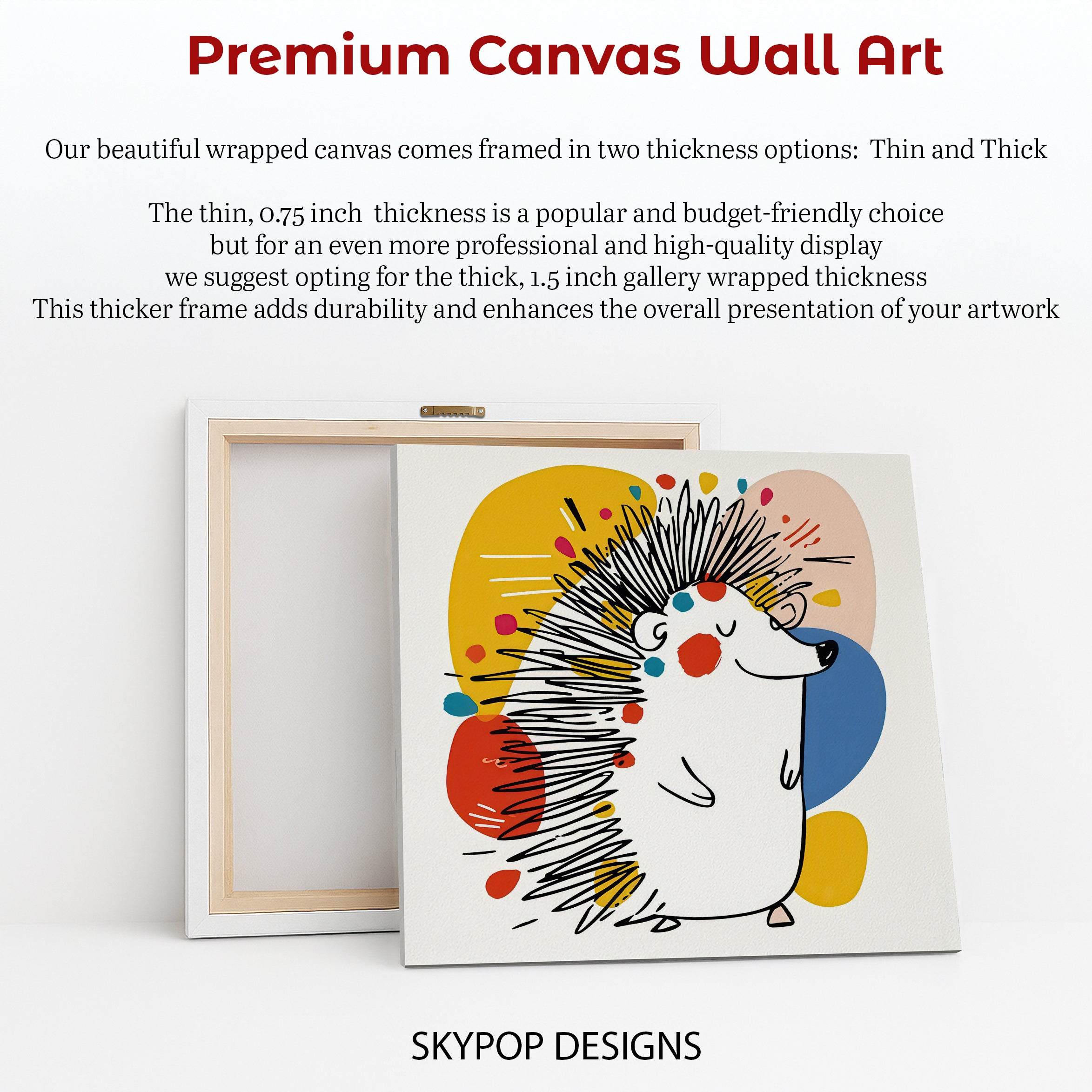 Bring a splash of joy and whimsy into your home with this charming hedgehog canvas wall art. This unique piece of wall art features a playful hedgehog illustration with vibrant abstract shapes, creating a captivating focal point for any room. The striking combination of bold colors like yellow, blue, and red against a clean background makes this artwork a perfect addition for modern, minimalist, or bohemian decor styles. This hedgehog poster is ideal for transforming your living room, children's room, bedroom, or office into a more cheerful and inspiring space. The playful, graphic style of this canvas wall art is sure to spark smiles and conversations. High-quality printing ensures the longevity and vibrancy of this piece, making it a delightful gift for birthdays, holidays, or housewarmings. Elevate your wall decor with this eye-catching hedgehog print that embodies happiness and lightheartedness. This versatile artwork is a fantastic way to showcase your personality and add a touch of modern art to your home. Enhance your interior design with this stunning hedgehog canvas art, a perfect blend of animal art and contemporary design. Transform your ordinary walls into extraordinary displays of art and color today.