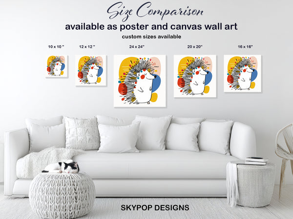 Hedgehog Art, Canvas or Poster, Whimsical Pop Art, Modern Decor, Living Room Children's Room Bedroom Office Art, Multicolor Yellow Blue Red