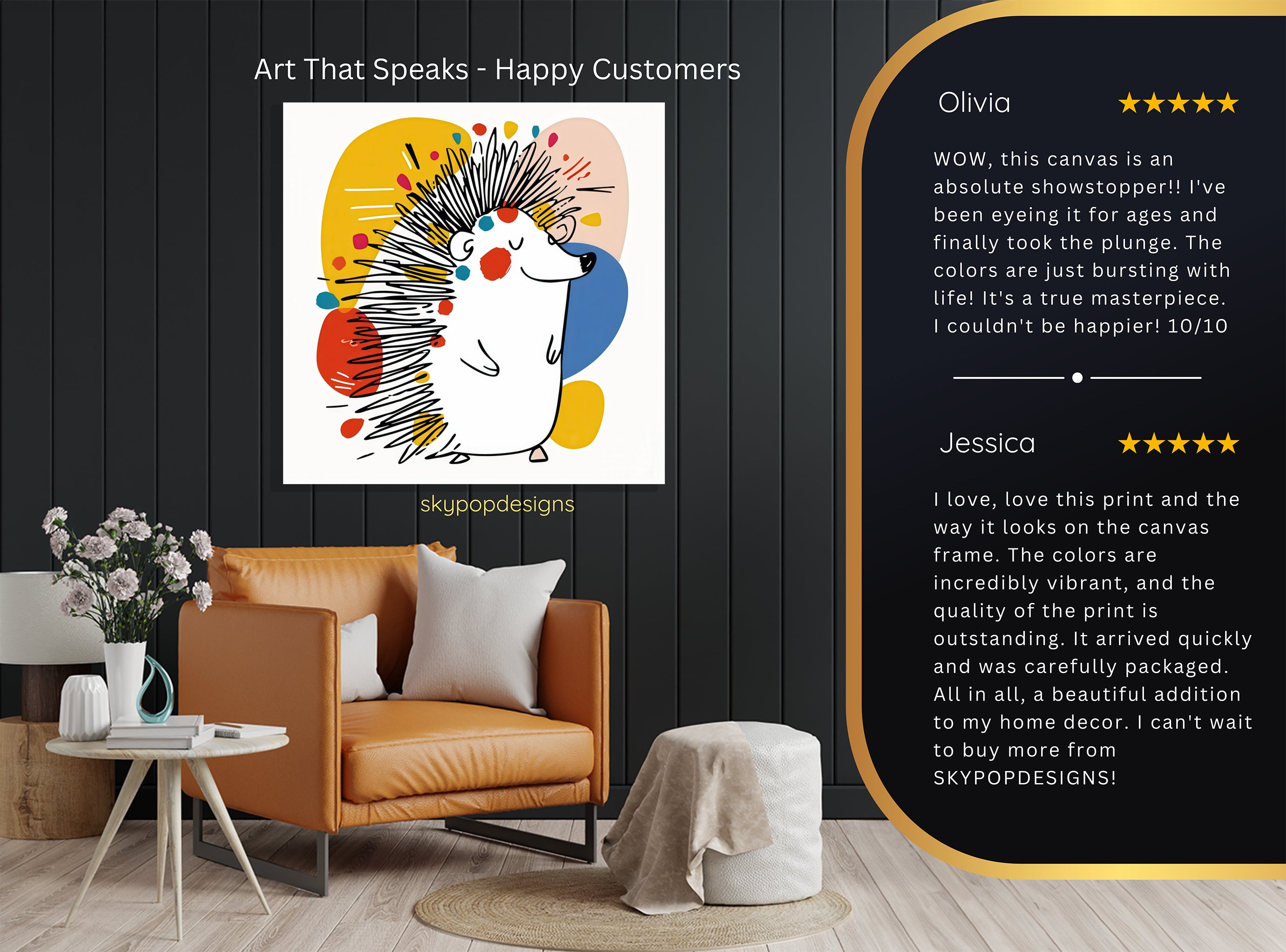 Keywords: Happy Hedgehog Art, Whimsical Wall Art, Pop Art Print, Figurative Canvas, Modern Decor, Minimalist Style, Bohemian Art, Living Room Art, Children's Room Decor, Bedroom Artwork, Office Wall Art, Multicolor Art, Yellow Blue Red Art, Hedgehog Poster, Animal Art, Cheerful Decor, Inspiring Wall Art, Playful Illustration, Vibrant Abstract Art, Graphic Style Art, Canvas Wall Art, High Quality Print, Birthday Gift, Holiday Gift, Housewarming Gift, Eye-Catching Art, Modern Art Print, Interior Design Art, Wall Decor, Unique Artwork