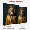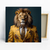 Make a bold statement with this captivating lion canvas wall art featuring a majestic lion dressed in a striking yellow floral suit. This unique piece of animal art blends regal power with sophisticated style, perfect for transforming any living room or office space. The vibrant yellow canvas print, accented with ornate floral patterns on the suit and tie, adds a touch of eclectic charm and modern flair. Celebrate your inner strength and individuality with this stunning artwork that is sure to inspire conversation. This impactful poster or canvas wall art is ideal for modern homes that embrace bold color and unique decor. It's a perfect piece to elevate a home office or add personality to a sophisticated bedroom. The striking contrast between the lion's natural features and the man-made attire creates a visually intriguing composition. This versatile wall art also makes a fantastic gift for birthdays or housewarmings for someone with a strong sense of personal style. High-quality printing ensures every detail of the lion's mane and the intricate suit design is captured beautifully, making this a truly eye-catching addition to your home decor. Enhance your space with this extraordinary piece of animal-themed wall art that showcases confidence and refined taste. Transform your environment and express your unique character with this dapper lion canvas print today.