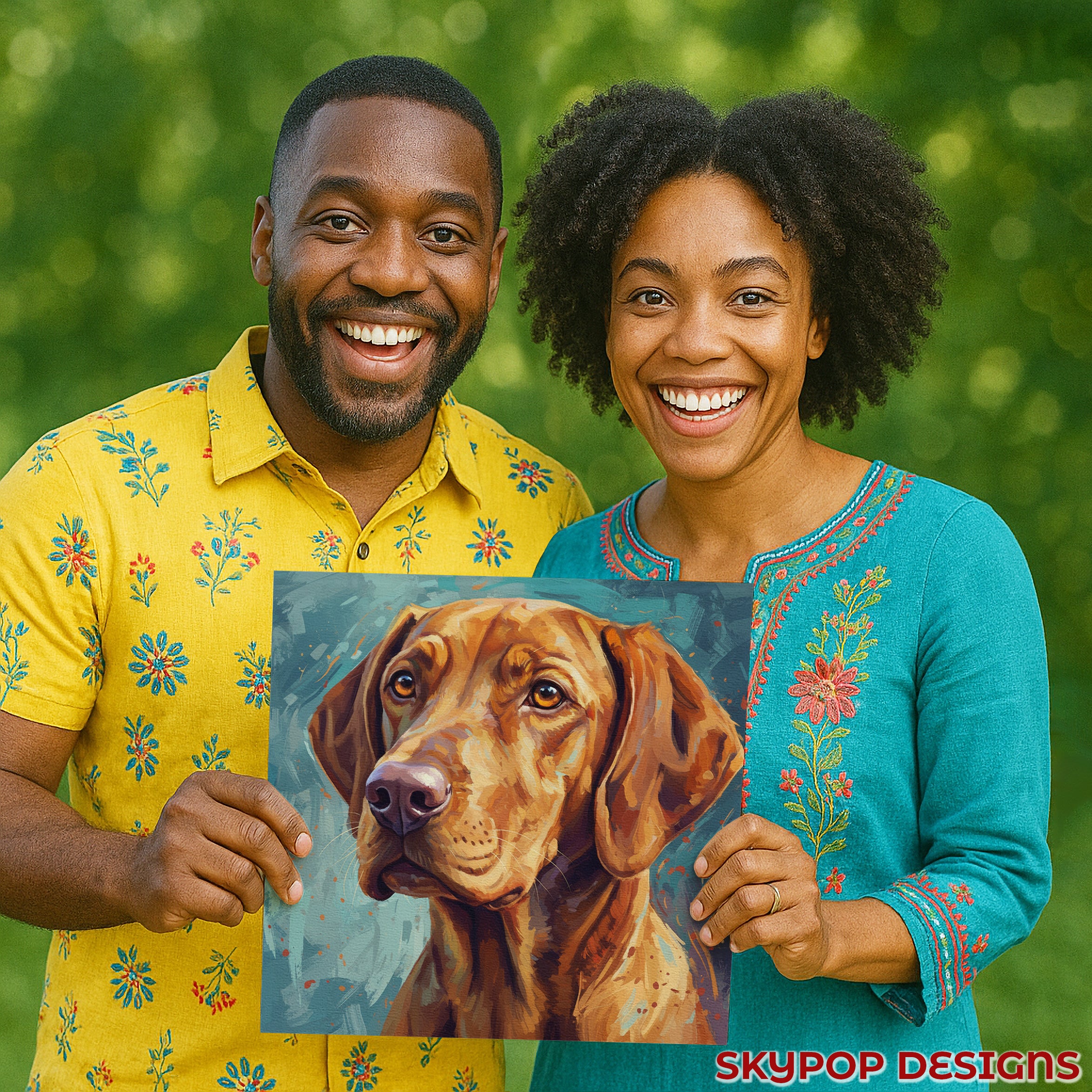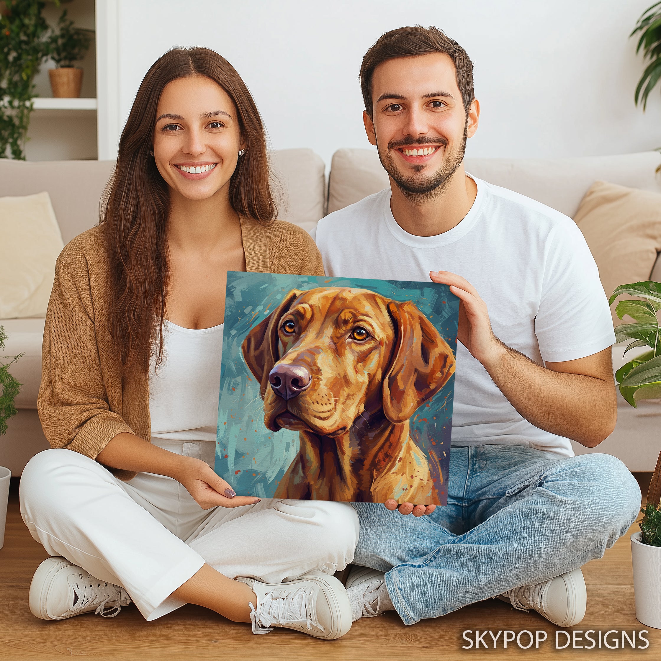 Transform your living space with this striking Vizsla canvas wall art, capturing the loyalty and beauty of this beloved dog breed. The vibrant strokes of brown and teal create a captivating focal point, perfect for enhancing any modern or contemporary decor. This Vizsla poster or canvas wall art is ideal for dog lovers and adds a touch of personality to your living room, bedroom, or office. The rich color palette evokes warmth and energy, while the dynamic brushwork brings the subject to life, making this a stunning piece of animal art. Elevate your home with this eye-catching wall art, a perfect addition to minimalist interiors or a complementary piece for bohemian spaces seeking a touch of sophistication. This versatile piece of canvas art is not just decor; it's a celebration of the human-animal bond, inspiring joy and comfort. Whether you're looking for a unique housewarming gift or a way to refresh your home decor, this Vizsla artwork offers unparalleled quality and visual appeal. Its striking design makes it a conversation starter in any entryway or guest room. This high-quality canvas wall art ensures that every detail of the Vizsla's expressive eyes and coat is vividly rendered. Embrace the warmth and character this Vizsla poster brings to your walls. Experience the transformative power of this exceptional Vizsla canvas art today.