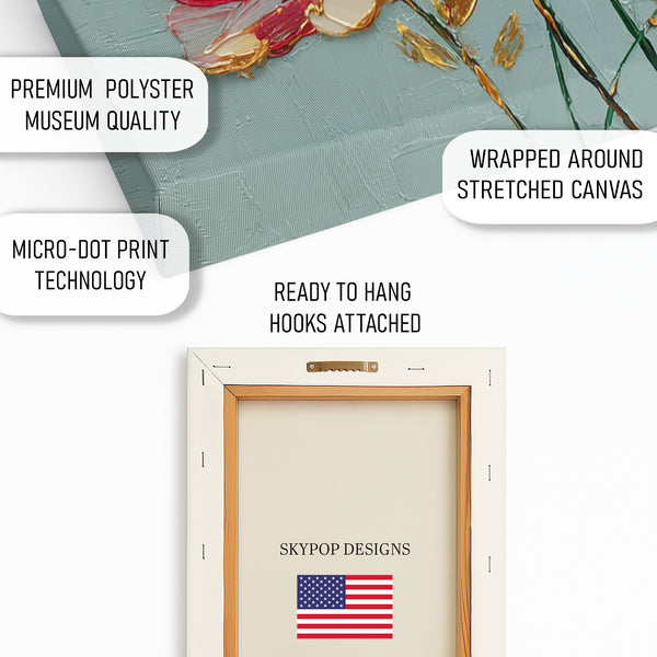 Keywords: Floral Wall Art, Red Floral Canvas, Gold Floral Art, Elegant Wall Art, Contemporary Floral, Modern Art, Minimalist Decor, Living Room Art, Bedroom Artwork, Dining Room Decor, Entryway Art, Teal Wall Art, Red Artwork, Gold Accents, Nature Art, Botanical Print, Statement Wall Art, Luxury Wall Decor, Textured Artwork, Canvas Poster, Home Decor Gift, Housewarming Present, Interior Design, Wall Decor Inspiration, Passionate Colors, Vibrant Art, Sophisticated Style, Flower Art Print, Art For Home, Wall Art Collection