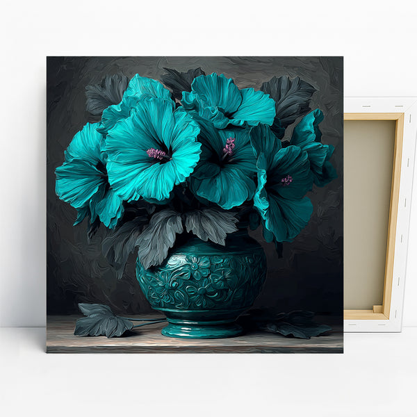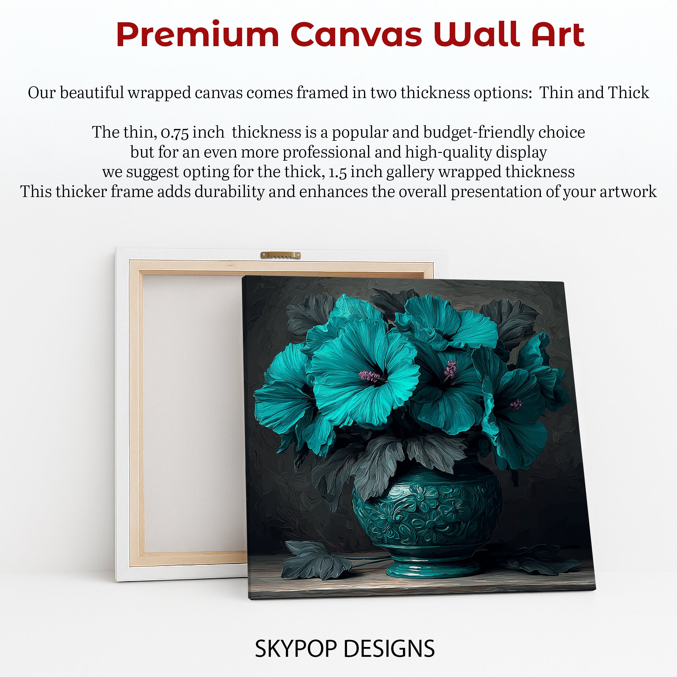 Keywords: Teal Hibiscus Art, Floral Canvas Wall Art, Nature Wall Decor, Still Life Art, Contemporary Art, Modern Wall Art, Glam Decor, Living Room Art, Bedroom Art, Entryway Decor, Dining Room Art, Teal Wall Art, Multicolor Art, Black and White Art, Hibiscus Flower Art, Vase Wall Art, Floral Poster, Canvas Print, Home Decor, Interior Design, Luxury Decor, Sophisticated Art, Tranquil Wall Art, Vibrant Wall Art, Housewarming Gift, Birthday Gift, Holiday Gift, Botanical Art, Statement Piece, Elegant Home Decor