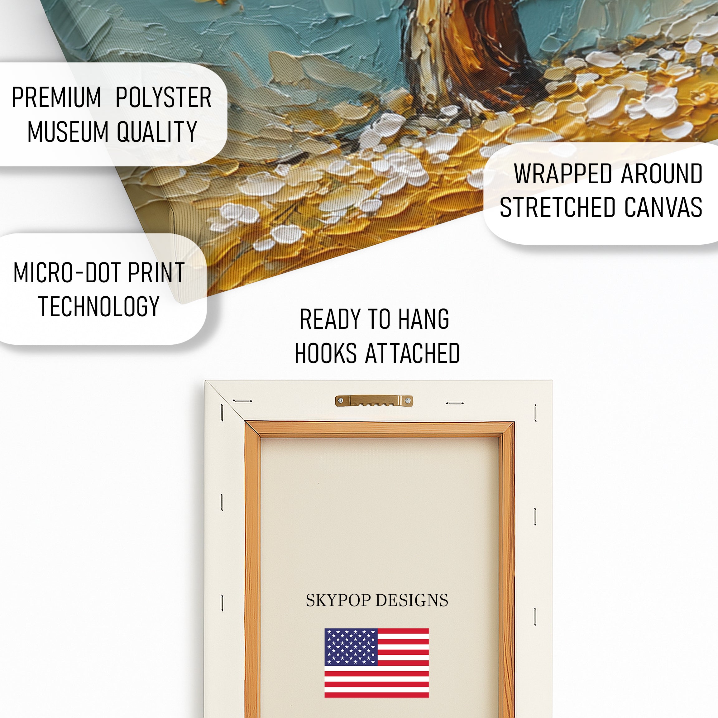 At SKYPOPDESIGNS, we specialize in high-quality canvas and poster prints designed to bring sophistication and style to your space. Please note that our designs are not created with 3D textures or as original oil, acrylic, or watercolor paintings; they are instead HD reproductions of original artwork. This approach allows us to offer these visually stunning pieces at competitive prices, ensuring you receive top-tier, maintenance-free art that's easy to enjoy.