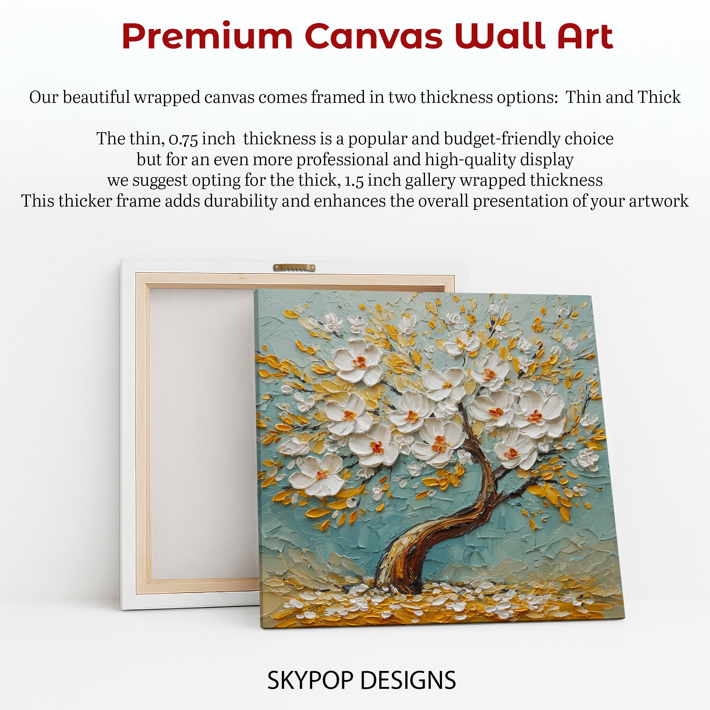 Keywords: Impressionism Art, Floral Art, Nature Art, White Blossom Tree, Canvas Wall Art, Teal Decor, White Decor, Yellow Decor, Brown Decor, Living Room Art, Bedroom Decor, Dining Room Art, Entryway Art, Scandinavian Decor, Minimalist Decor, Contemporary Art, Textured Impasto, Delicate Flowers, Golden Leaves, Natural Beauty, Tranquil Home, Home Decor, Wall Art, Blossom Tree Poster, Nature Inspired, Housewarming Gift, Birthday Gift, Holiday Gift, Botanical Art, Serene Sanctuary