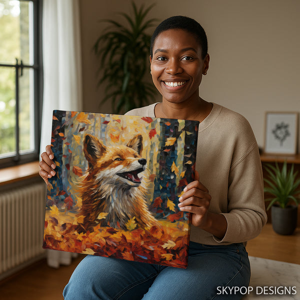 Keywords: Autumn Wall Art, Fox Canvas Print, Nature Art, Animal Wall Decor, Impressionism Art, Rustic Decor, Farmhouse Style, Bohemian Decor, Living Room Art, Bedroom Decor, Entryway Art, Dining Room Decor, Brown Wall Art, Orange Art Print, Yellow Canvas, Multicolor Artwork, Falling Leaves Art, Joyful Fox Art, Seasonal Wall Decor, Cozy Home Decor, Textured Wall Art, Brushstroke Art, Wildlife Art Print, Home Decor Gift, Housewarming Gift, Birthday Gift Idea, Nature Lover Gift, Fall Decor, Woodland Animal Art, Vibrant Autumn Art