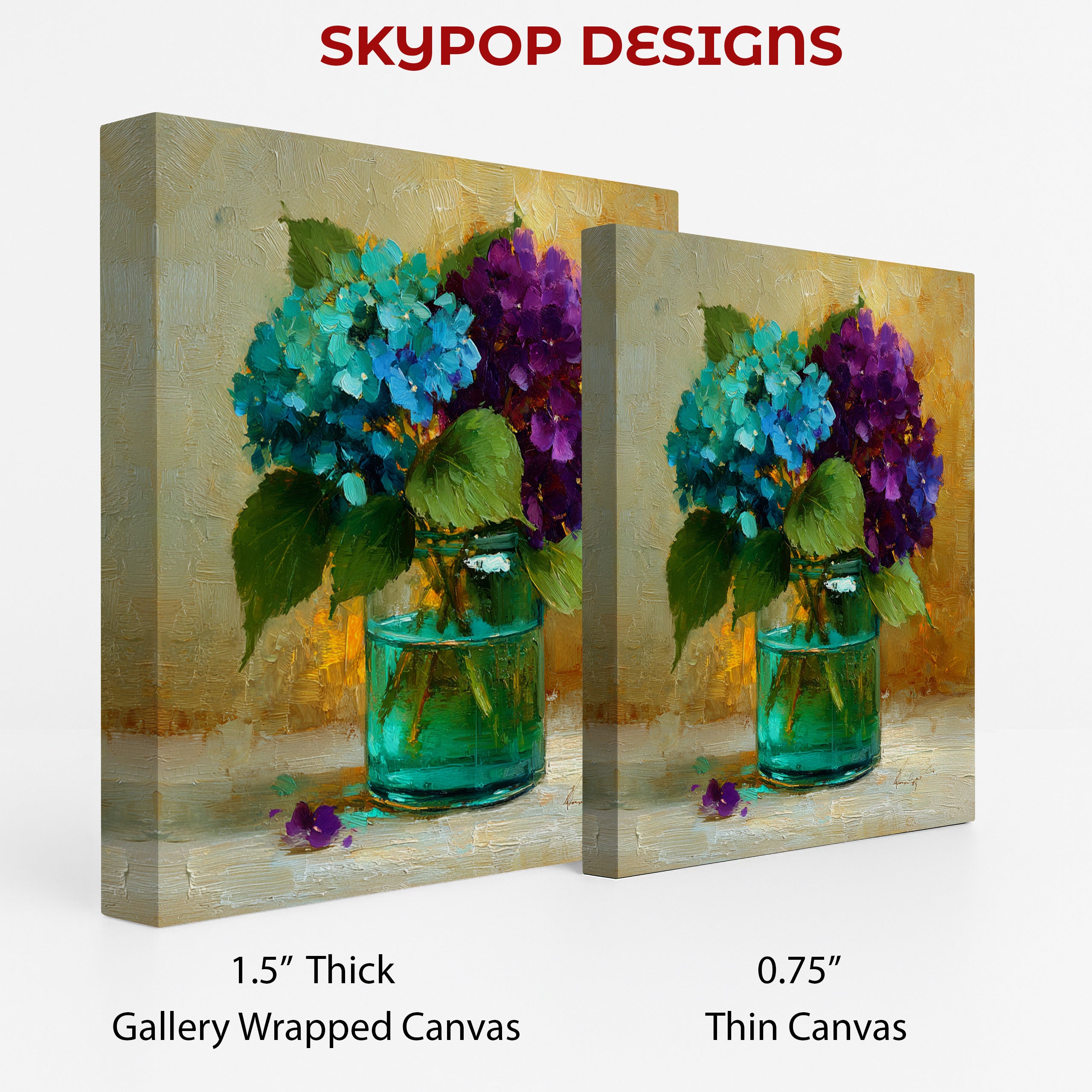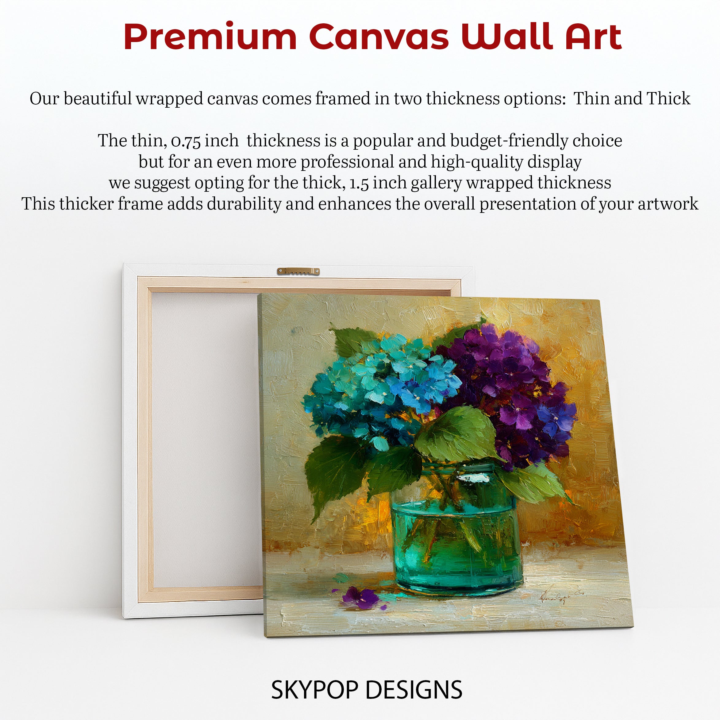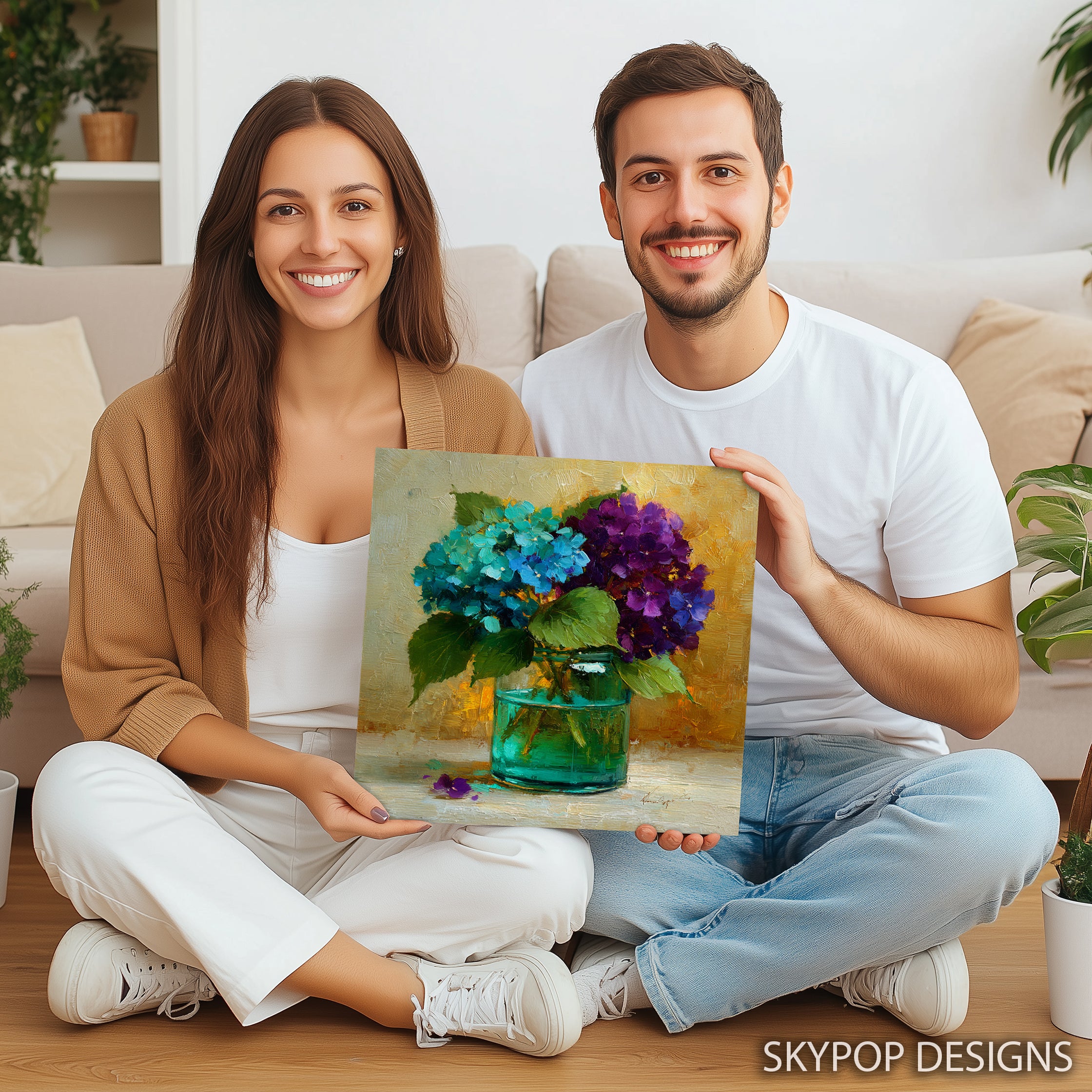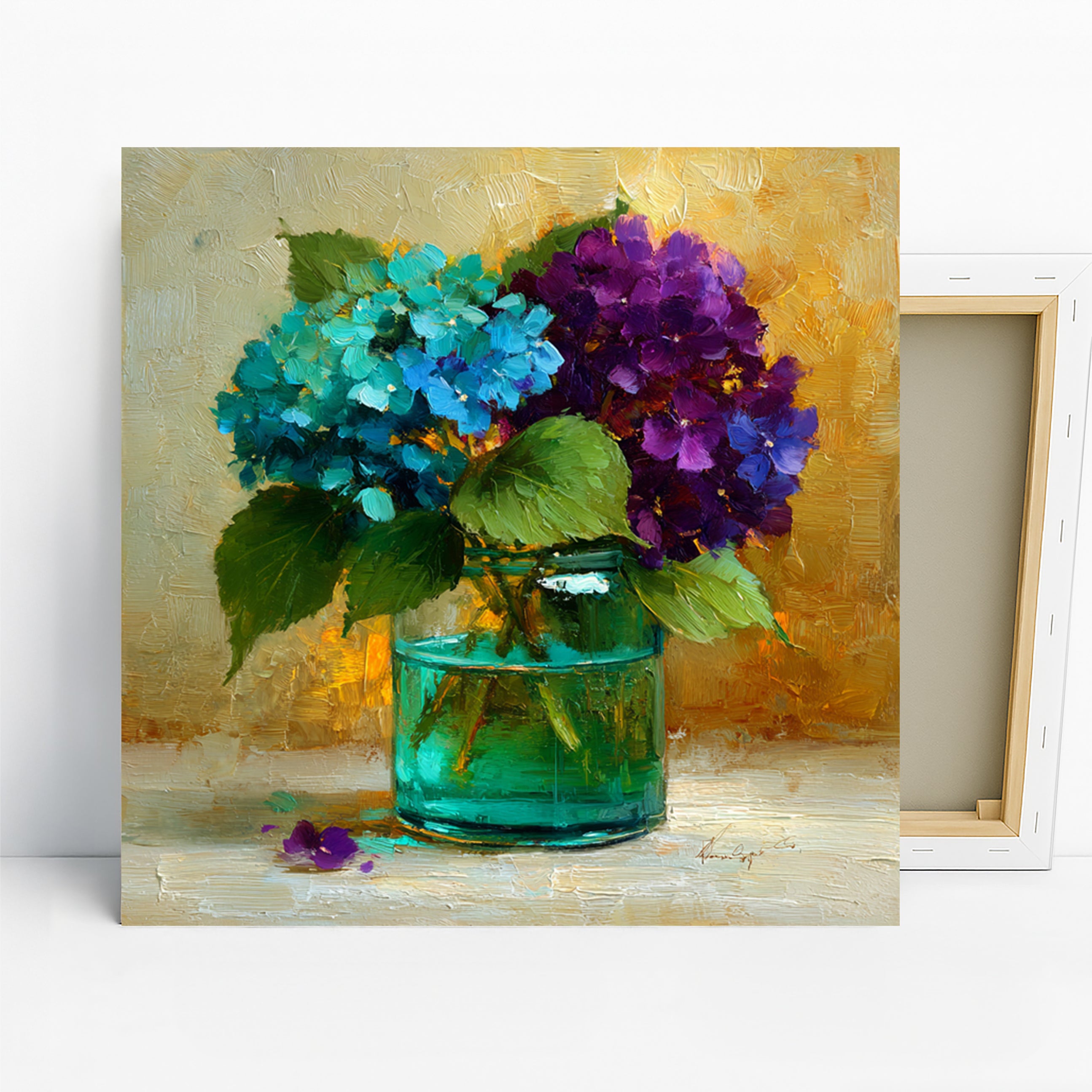 Keywords: Floral Art, Classic Art, Impressionism Art, Traditional Decor, Rustic Decor, French Country Decor, Dining Room Art, Living Room Art, Kitchen Art, Bedroom Art, Teal Wall Art, Purple Wall Art, Green Wall Art, Gold Accents, Hydrangea Canvas Art, Floral Wall Decor, Home Decor, Wall Art Print, Housewarming Gift, Holiday Decor, Nature Art, Botanical Art, Canvas Artwork, Fine Art Print, Vibrant Colors, Serene Decor, Elegant Home, Timeless Charm, Art for Walls, Teal Jar Art