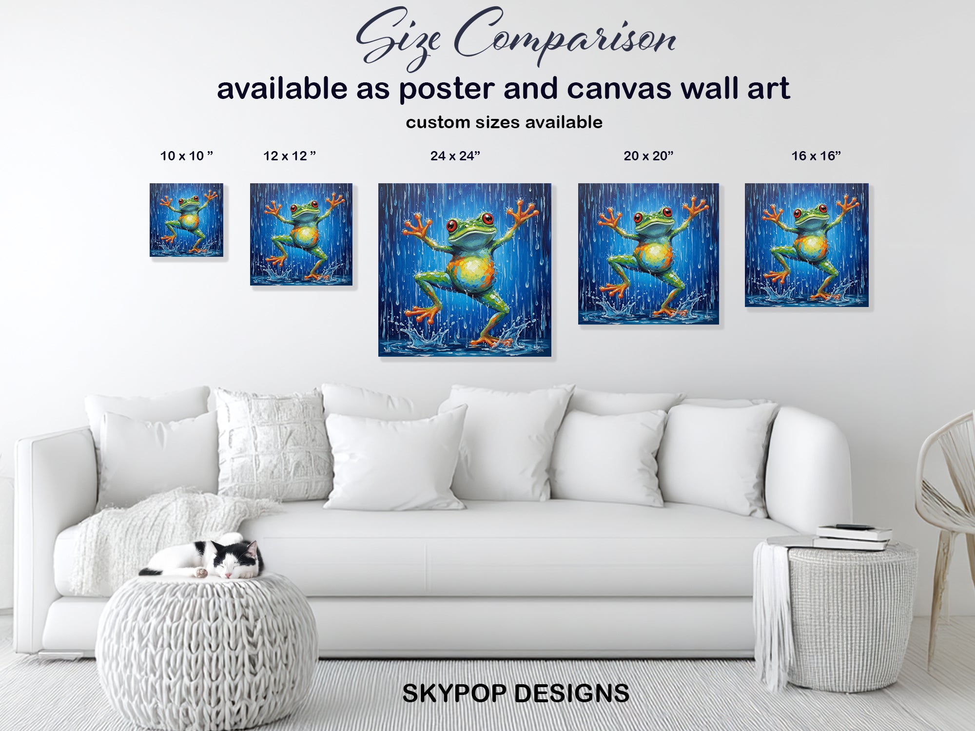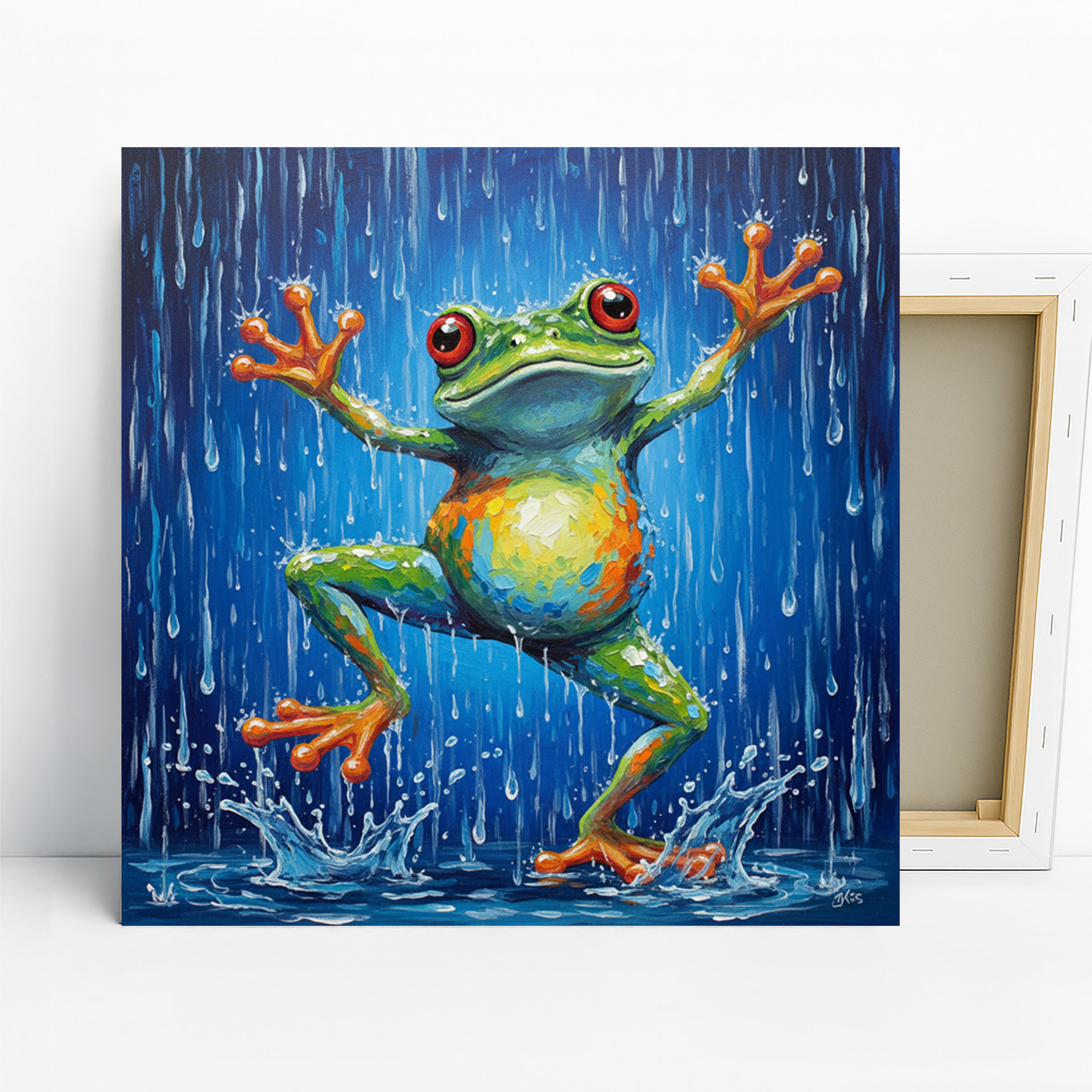Keywords: Animal Art, Whimsical Art, Bohemian Decor, Contemporary Decor, Modern Decor, Living Room Art, Children's Room, Nursery Art, Bathroom Decor, Blue Art, Green Art, Orange Art, Multicolor Art, Frog Art, Frog Wall Art, Rain Art, Joyful Art, Canvas Wall Art, Poster Art, Animal Poster, Frog Painting, Nature Art, Wildlife Art, Kids Room Decor, Home Decor, Wall Art, Statement Piece, Gift Idea, Housewarming Gift, Birthday Present