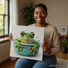 Frog Art, Canvas or Poster, Whimsical Modern Bohemian Decor, Living Room Bathroom Childrens Room Wall Art, Green Teal Orange White