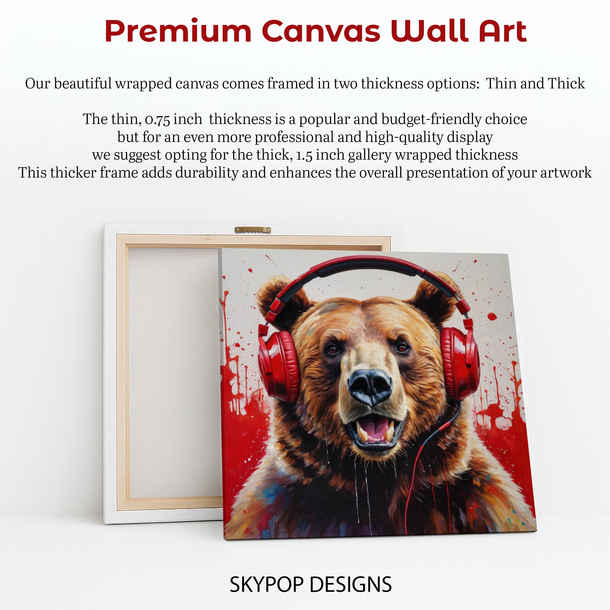 Keywords: Pop Art Bear, Street Art Canvas, Contemporary Wall Art, Modern Decor, Bohemian Style, Living Room Art, Game Room Decor, Office Wall Art, Bedroom Accent, Red Bear Art, Multicolor Art, Black and White Art, Rockin Bear, Bear with Headphones, Music Lover Gift, Gamers Decor, Bold Splash Art, Vibrant Wall Art, Energetic Art, Playful Home Decor, Powerful Focal Point, Contemporary Art Print, Music Themed Art, Animal Wall Art, Housewarming Gift, Unique Home Decor, Conversation Starter Art, Matte Finish Art, Edgy Art, Colorful Bear Poster