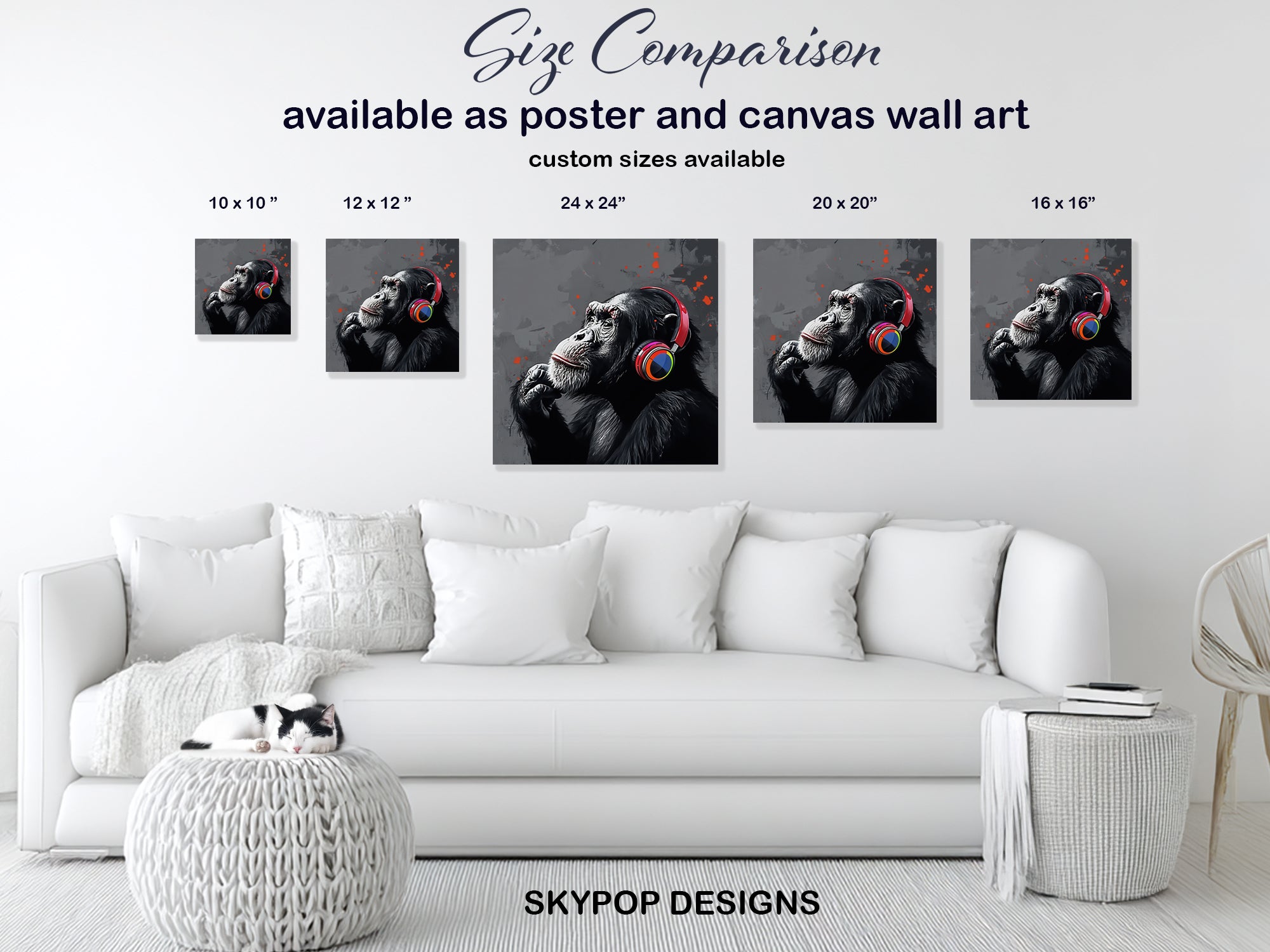 Keywords: Chimpanzee Wall Art, Graffiti Art, Abstract Art, Contemporary Art, Modern Decor, Minimalist Decor, Urban Art, Hip Hop Art, Animal Art, Music Lover Gift, Art Enthusiast Gift, Living Room Art, Office Decor, Bedroom Art, Game Room Decor, Canvas Wall Art, Wall Decor, Home Decor, Sound and Style, Vibrant Headphones, Grey Art, Multicolor Art, Black and White Art, Chimpanzee Poster, Music Art, Expressive Artwork, Textured Background, Conversation Starter, Home Refresh, Modern Energy