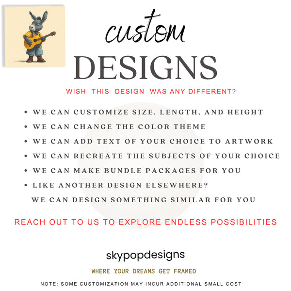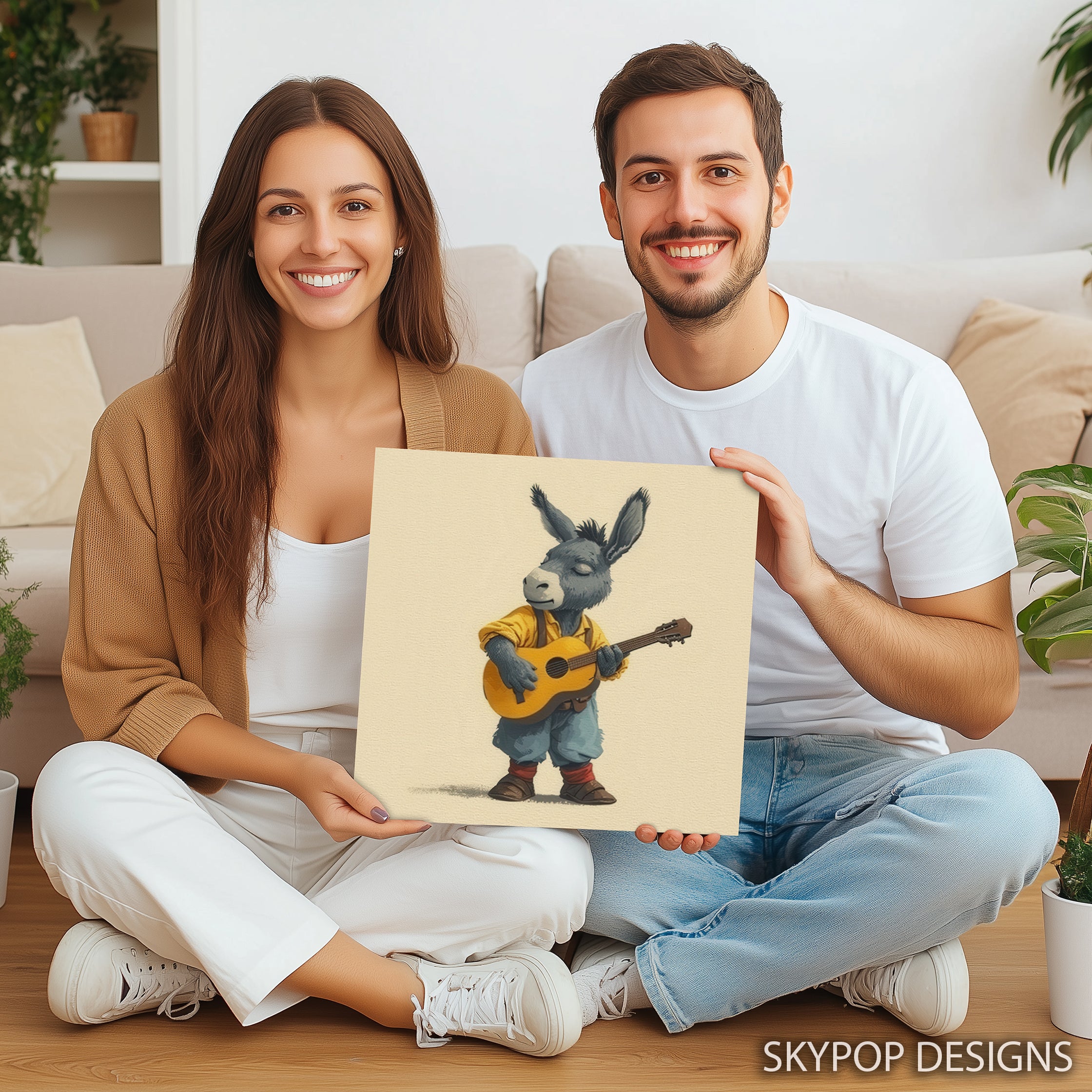 Keywords: Whimsical Art, Animal Art, Figurative Art, Bohemian Decor, Farmhouse Decor, Rustic Decor, Living Room Art, Children's Room Art, Bedroom Decor, Game Room Decor, Yellow Art, Blue Art, Brown Art, Multicolor Art, Donkey Art, Guitar Art, Music Lover Gift, Wall Art, Canvas Print, Home Decor, Unique Poster, Playful Art, Cheerful Decor, Housewarming Gift, Birthday Gift, Animal Poster, Donkey Lovers, Music Decor, Contemporary Art, Modern Farmhouse