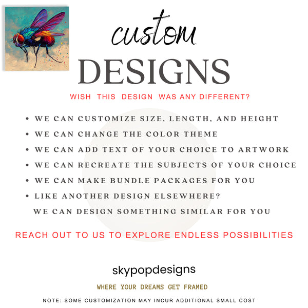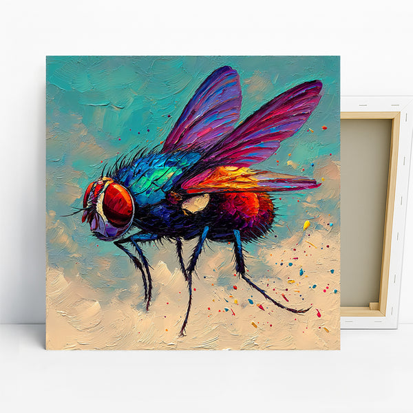 Transform your space with this vibrant fly canvas wall art featuring a bold and colorful depiction of this common insect. The striking multicolor palette and graffiti-inspired style create an energetic focal point that instantly elevates any room. This eye-catching poster or canvas wall art blends pop art sensibilities with contemporary design, making it perfect for modern living rooms or eclectic game rooms. The vibrant blues, reds, and yellows used in the artwork symbolize energy and creativity, infusing your environment with a lively mood. Ideal for bohemian decor enthusiasts, this piece adds a unique and unexpected twist to minimalist spaces while making a statement in eclectic settings. The textured brushwork gives depth and character to the composition, ensuring this canvas wall art captures attention from every angle. Perfect as a memorable housewarming gift or to add a pop of personality to your home decor, this versatile artwork complements various interior styles. High-quality printing ensures every detail of the fly's iridescent wings and segmented body is vividly captured, making this poster a stunning addition to your wall art collection. Whether displayed in a creative office, a vibrant bedroom, or a social living room, this unconventional artwork sparks conversation and celebrates the beauty in the unexpected. Inject a dose of edgy style and bold color into your home with this unique fly artwork today.