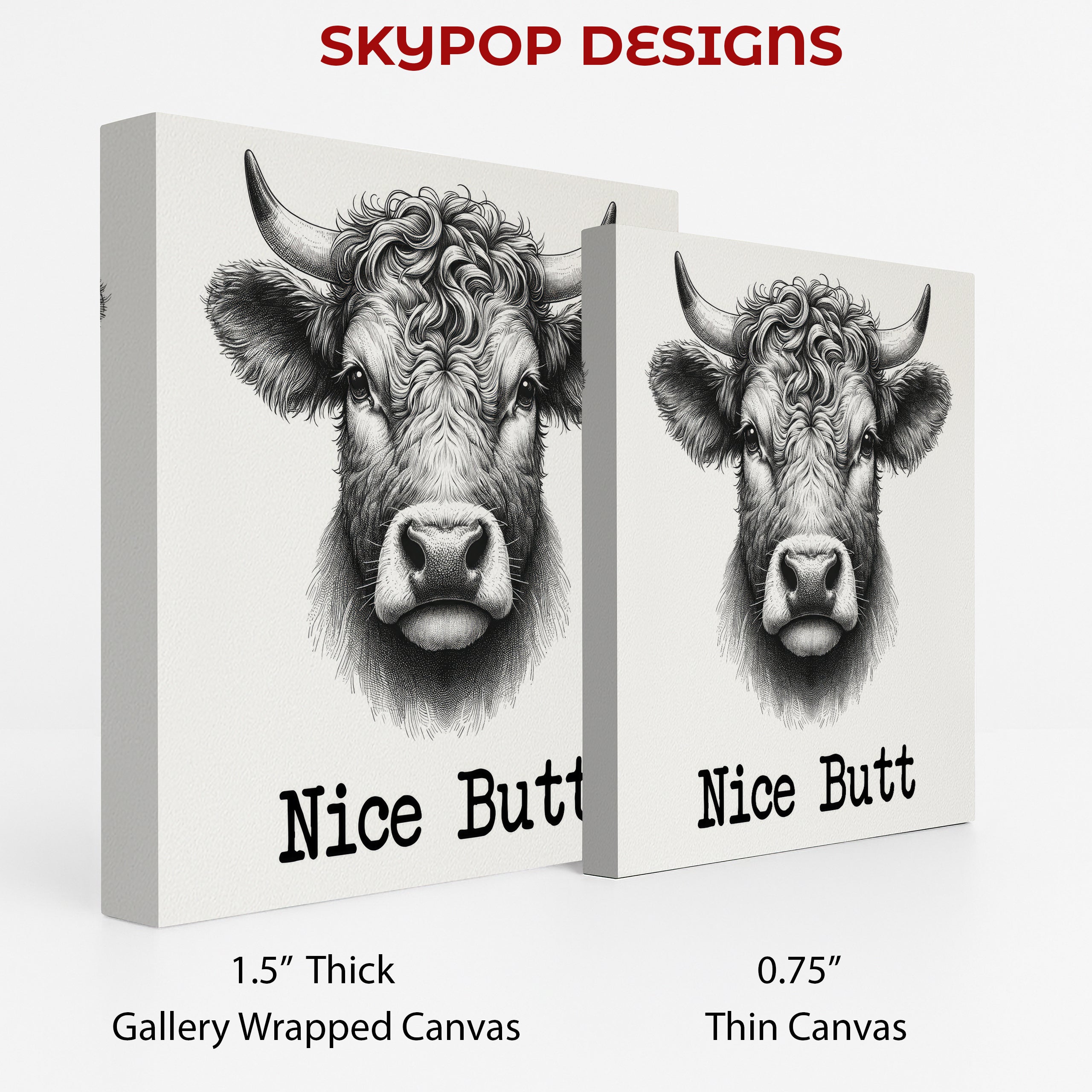 Transform any space with this striking Highland Cow canvas wall art. The detailed black and white illustration of a highland cow, coupled with the bold text, brings a touch of humor and personality to your home. This unique piece of animal art is perfect for modern, rustic, or farmhouse decor styles, instantly elevating your living room, game room, kitchen, or even bathroom. The monochromatic palette of this poster ensures it complements any color scheme, while the high-quality canvas print showcases the intricate details of the cow's shaggy coat and horns. It’s a captivating conversation starter and a fantastic gift for cow lovers, farmers, or anyone with a sense of humor. This versatile wall art adds a charming, slightly cheeky element to your decor. Whether you're looking to add character to a minimalist setting or enhance a country-chic vibe, this highland cow artwork delivers. Celebrate your love for farm animals and unique wall decor with this memorable print. Elevate your space today with this eye-catching canvas wall art.
