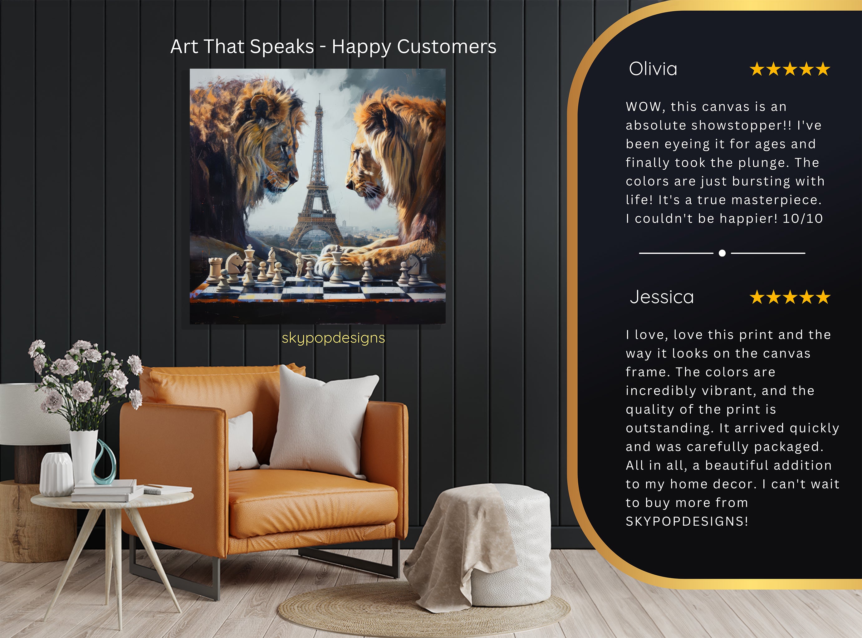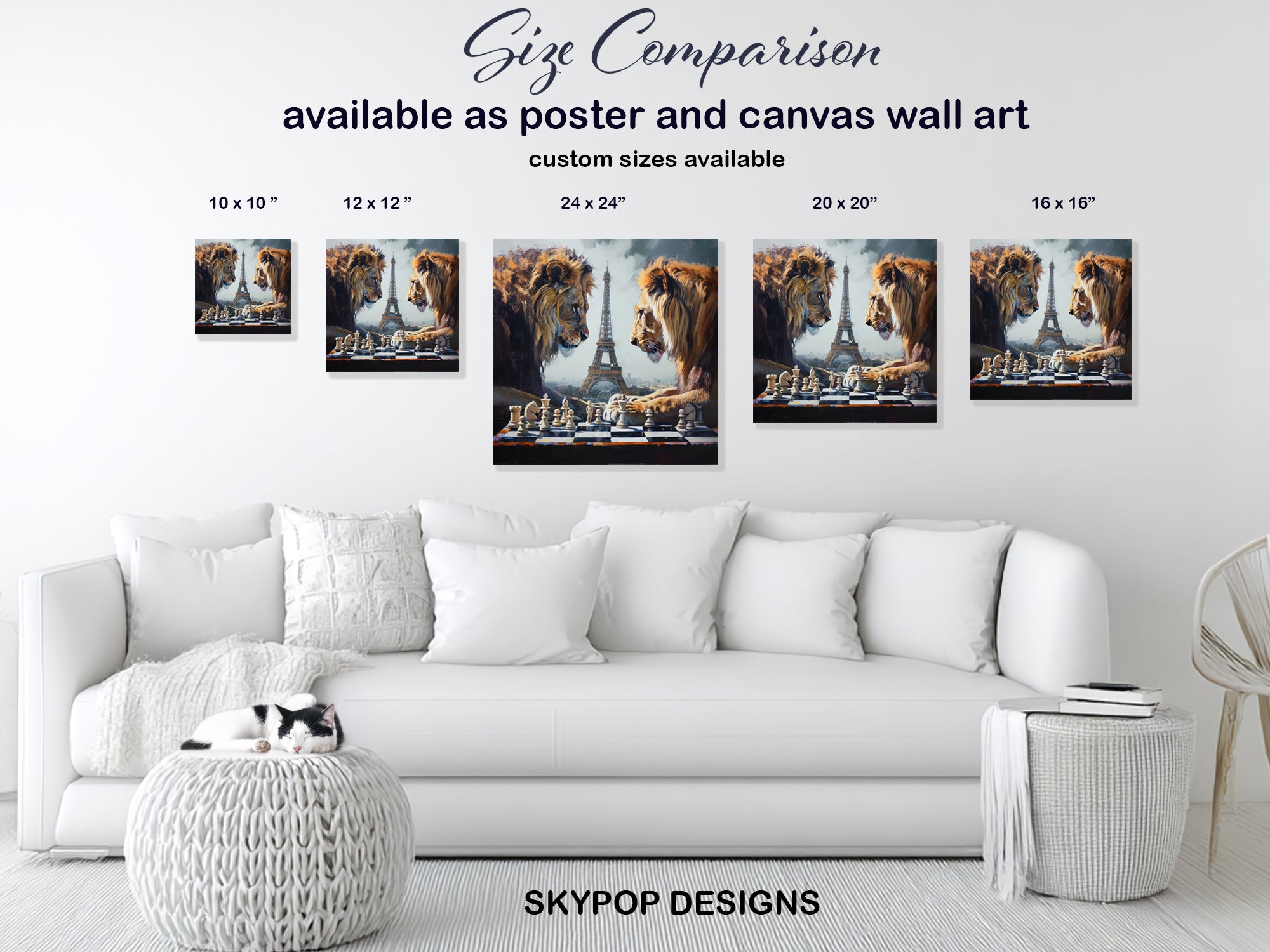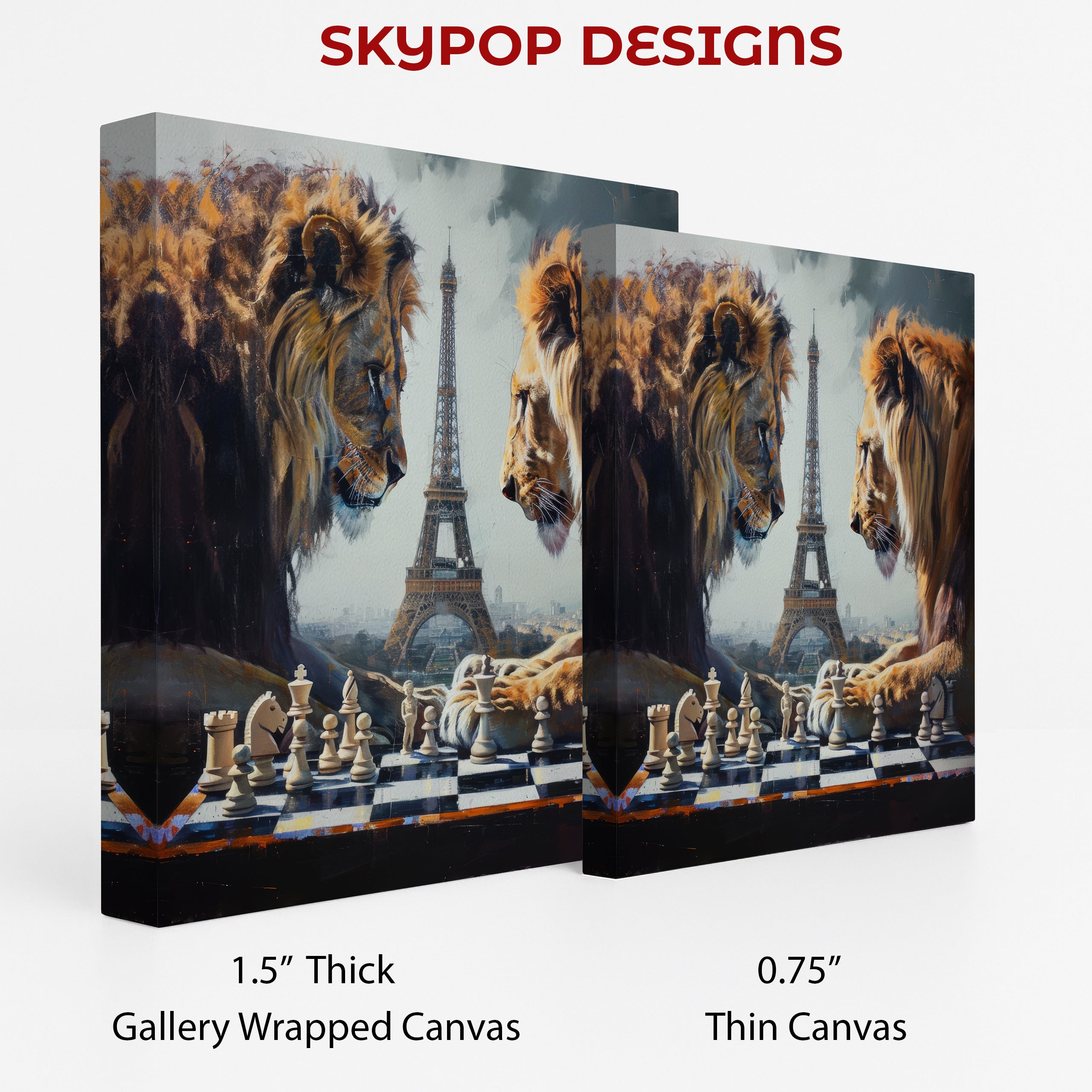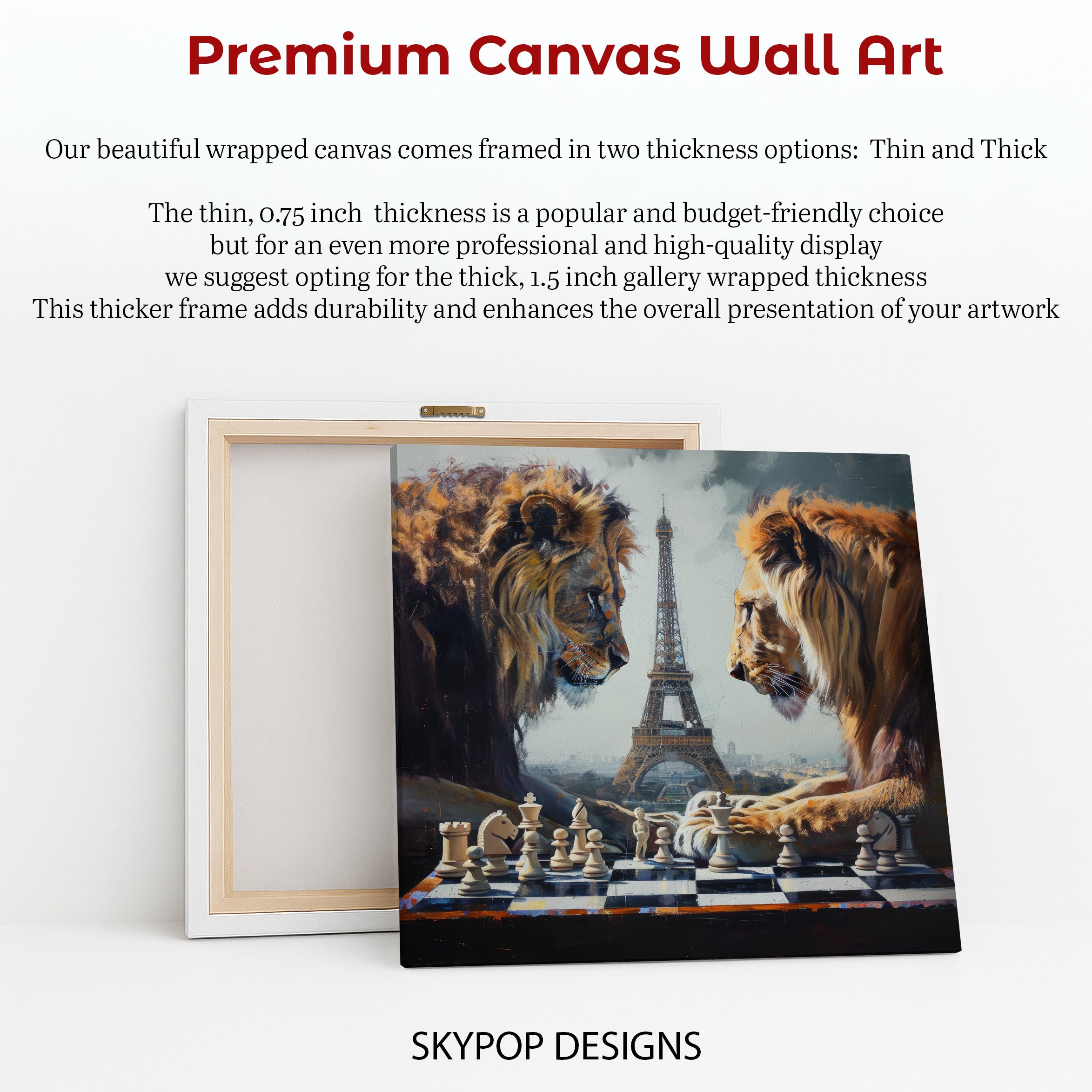 Keywords: Lion Wall Art, Canvas Art, Paris Decor, Eiffel Tower Art, Chess Art, Animal Wall Art, Contemporary Art, Modern Decor, Living Room Art, Office Art, Bedroom Art, Game Room Decor, Multicolor Art, Brown Art, Black Art, White Art, Lion Chess, Nature Art, Figurative Art, Glam Decor, Statement Piece, Wall Poster, Home Decor, Art Enthusiast Gift, Chess Lover Gift, Housewarming Gift, Birthday Gift, Parisian Flair, Bold Design, Thought-Provoking Art