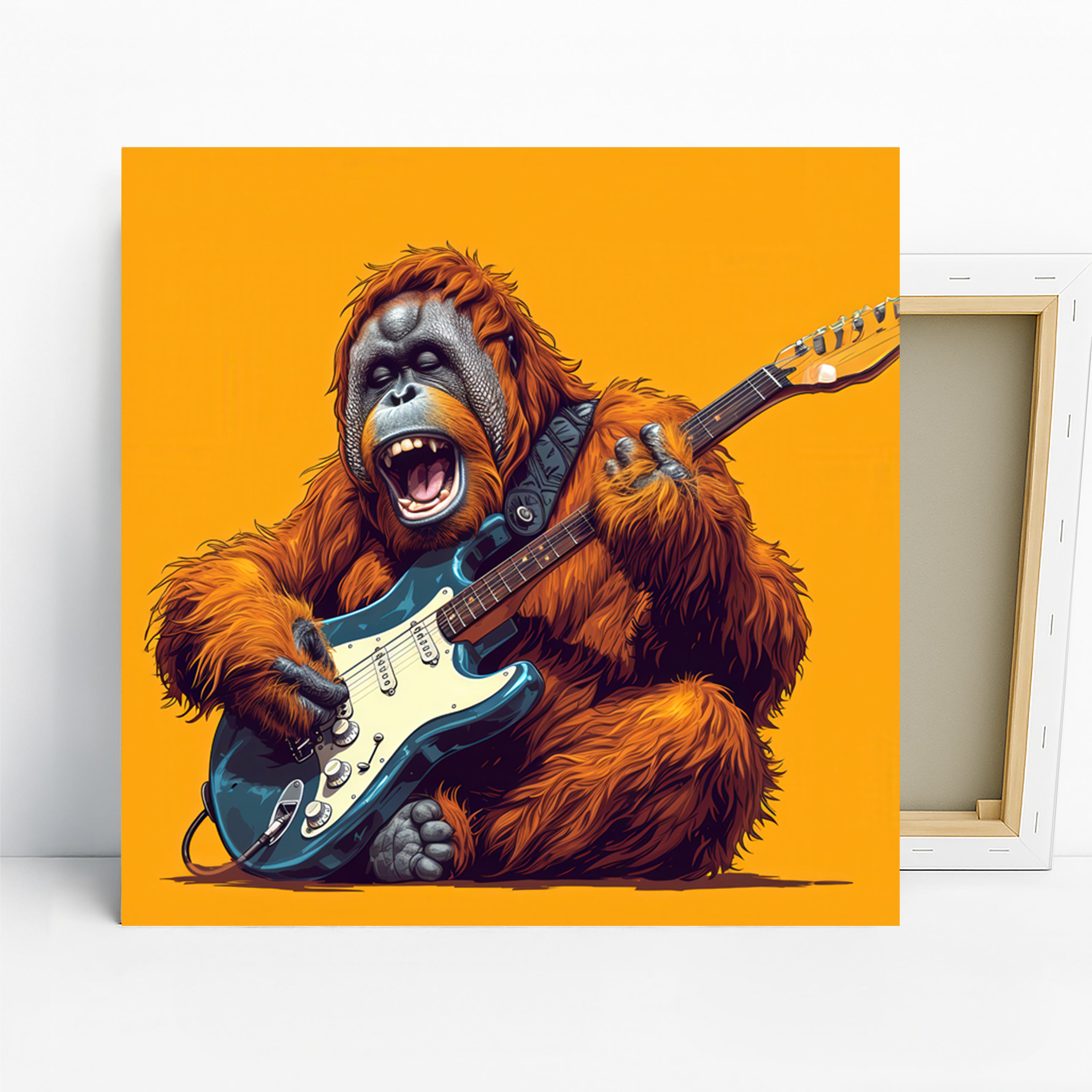 Unleash your inner rockstar with this dynamic orangutan canvas wall art, a vibrant addition that's sure to electrify your space. This striking piece showcases a powerful orangutan passionately playing a guitar, creating a captivating visual that celebrates music and animal art. Perfect for modern living rooms or eclectic game rooms, this poster brings an energetic vibe to any setting. The bold, graphic style and bright yellow background create a striking contrast, evoking feelings of excitement and joy. This versatile wall art is ideal for music enthusiasts, making it a fantastic gift for birthdays or holidays. It’s also a brilliant choice for anyone looking to add a unique, conversation-starting element to their home decor. Enhance your office or music room with this inspiring piece that blends contemporary art with a touch of rebellion. The detailed illustration captures the raw energy of a live performance, transforming any wall into a statement piece. Available in various sizes, this canvas print ensures high-quality artistry that will stand the test of time. Elevate your home's aesthetic with this unique blend of pop art and animal imagery, bringing a sense of fun and creativity into your everyday life. Add this amazing orangutan artwork to your collection today and feel the rhythm.