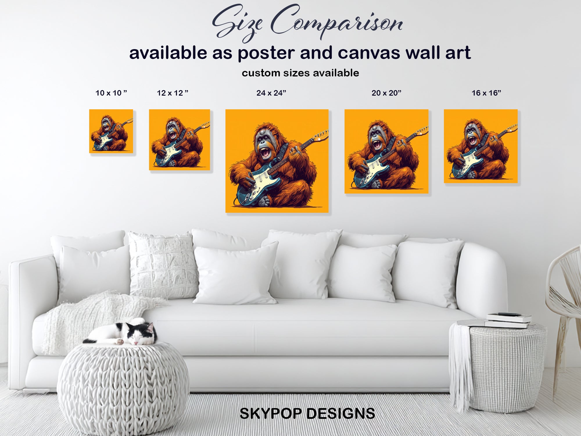 Keywords: Orangutan Art, Rocking Orangutan, Guitar Art, Canvas Wall Art, Animal Wall Art, Pop Art Print, Graffiti Art, Contemporary Art, Modern Decor, Bohemian Decor, Living Room Art, Game Room Decor, Office Wall Art, Music Room Decor, Yellow Art, Orange Art, Multicolor Art, Black Art, Music Lover Gift, Birthday Gift, Holiday Gift, Unique Wall Art, Statement Piece, Home Decor, Animal Lover, Vibrant Art, Energetic Vibe, Joyful Art, Creative Decor, Rockstar Art