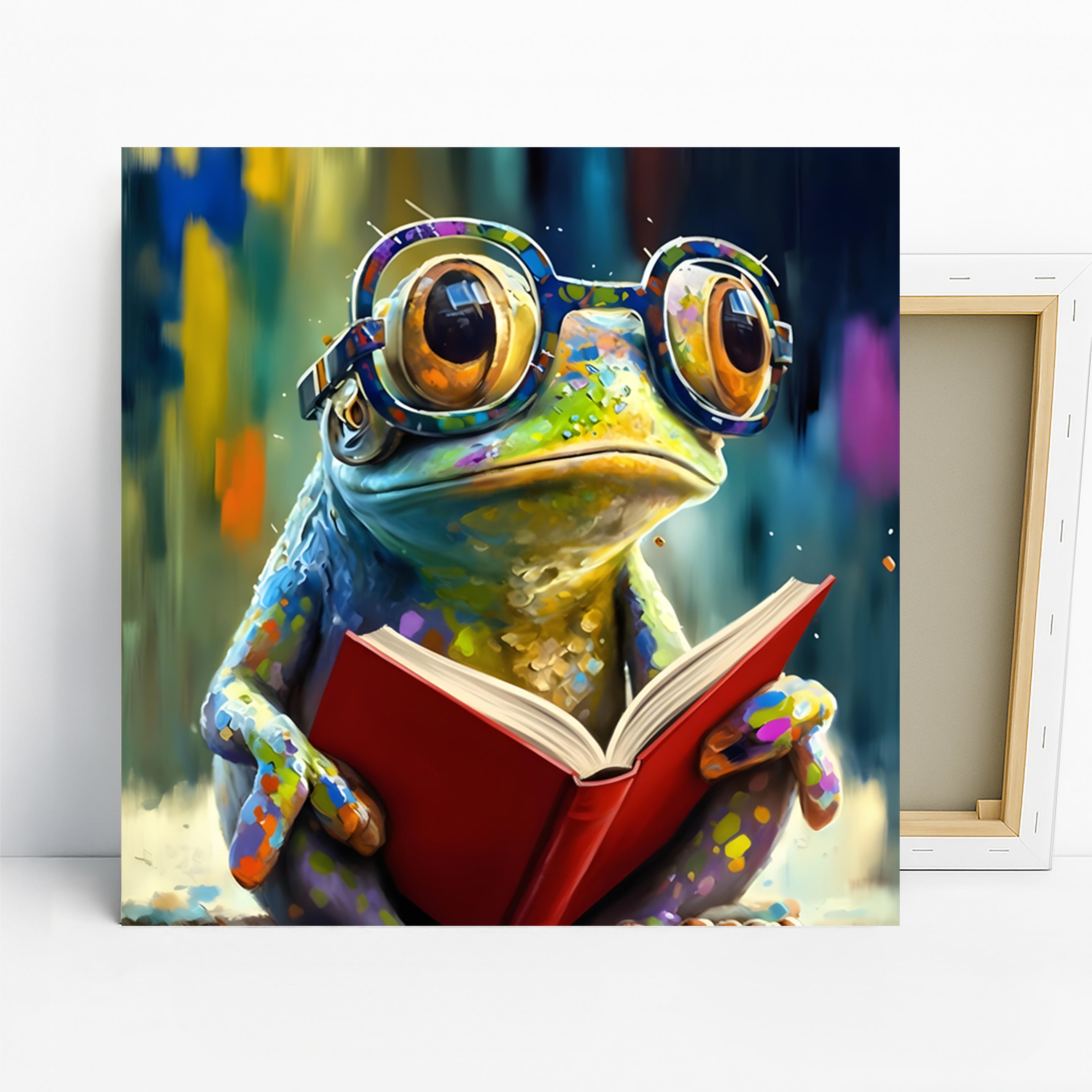 Keywords: Pop Art Canvas Art, Whimsical Frog Art, Graffiti Wall Art, Bohemian Decor, Modern Wall Art, Contemporary Decor, Living Room Art, Children's Room Decor, Office Wall Art, Game Room Decor, Multicolor Canvas, Blue Art, Yellow Art, Green Art, Frog Poster, Professor Frog Art, Reading Adventure Art, Animal Wall Art, Vibrant Art, Funny Home Decor, Imaginative Art, Creative Office Art, Boho Style Decor, Kids Room Wall Art, Unique Wall Art, Art For Students, Teacher Gift Art, Reading Lover Gift, Fun Wall Decor, Textured Canvas