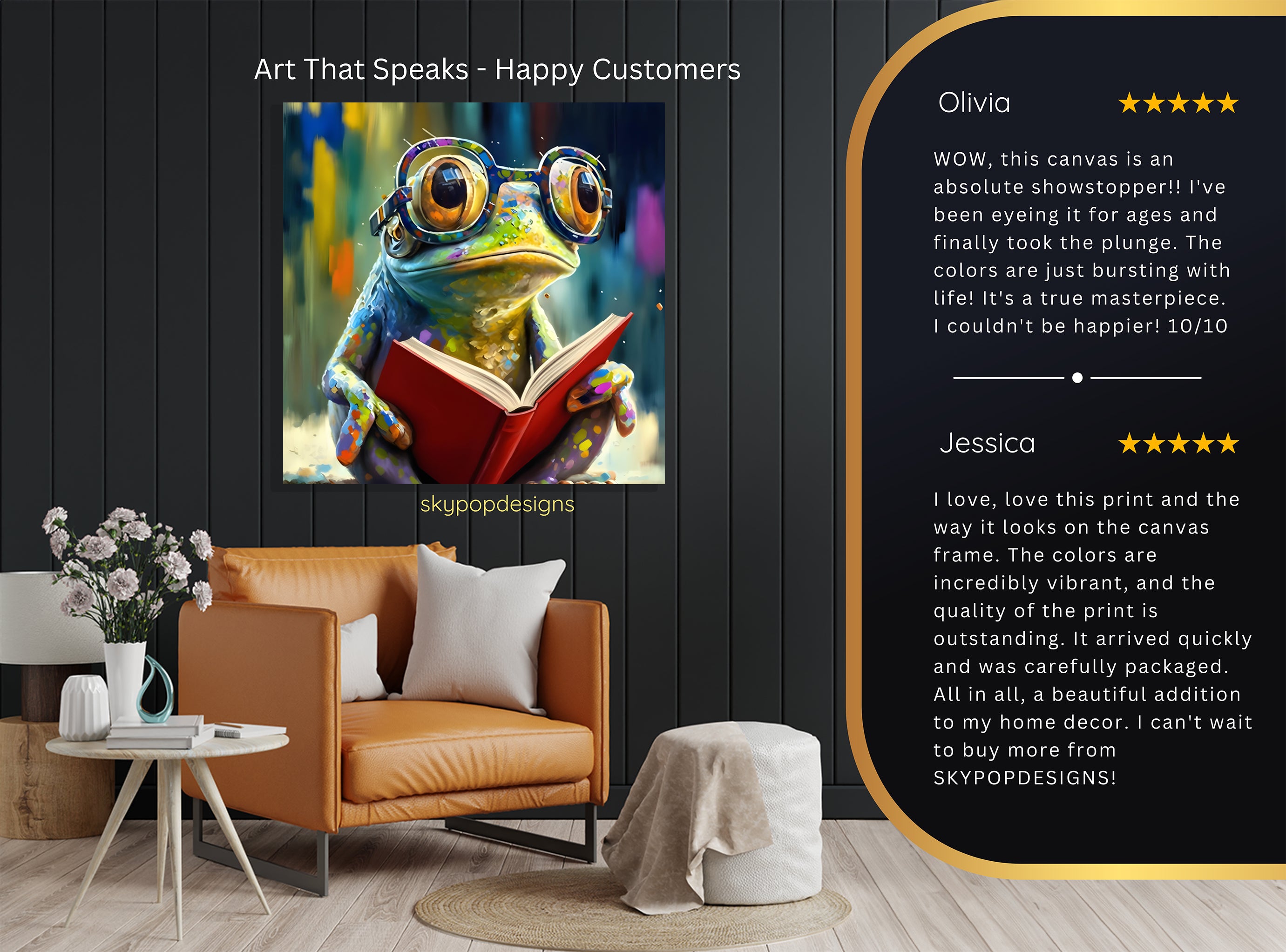 At SKYPOPDESIGNS, we specialize in high-quality canvas and poster prints designed to bring sophistication and style to your space. Please note that our designs are not created with 3D textures or as original oil, acrylic, or watercolor paintings; they are instead HD reproductions of original artwork. This approach allows us to offer these visually stunning pieces at competitive prices, ensuring you receive top-tier, maintenance-free art that's easy to enjoy.