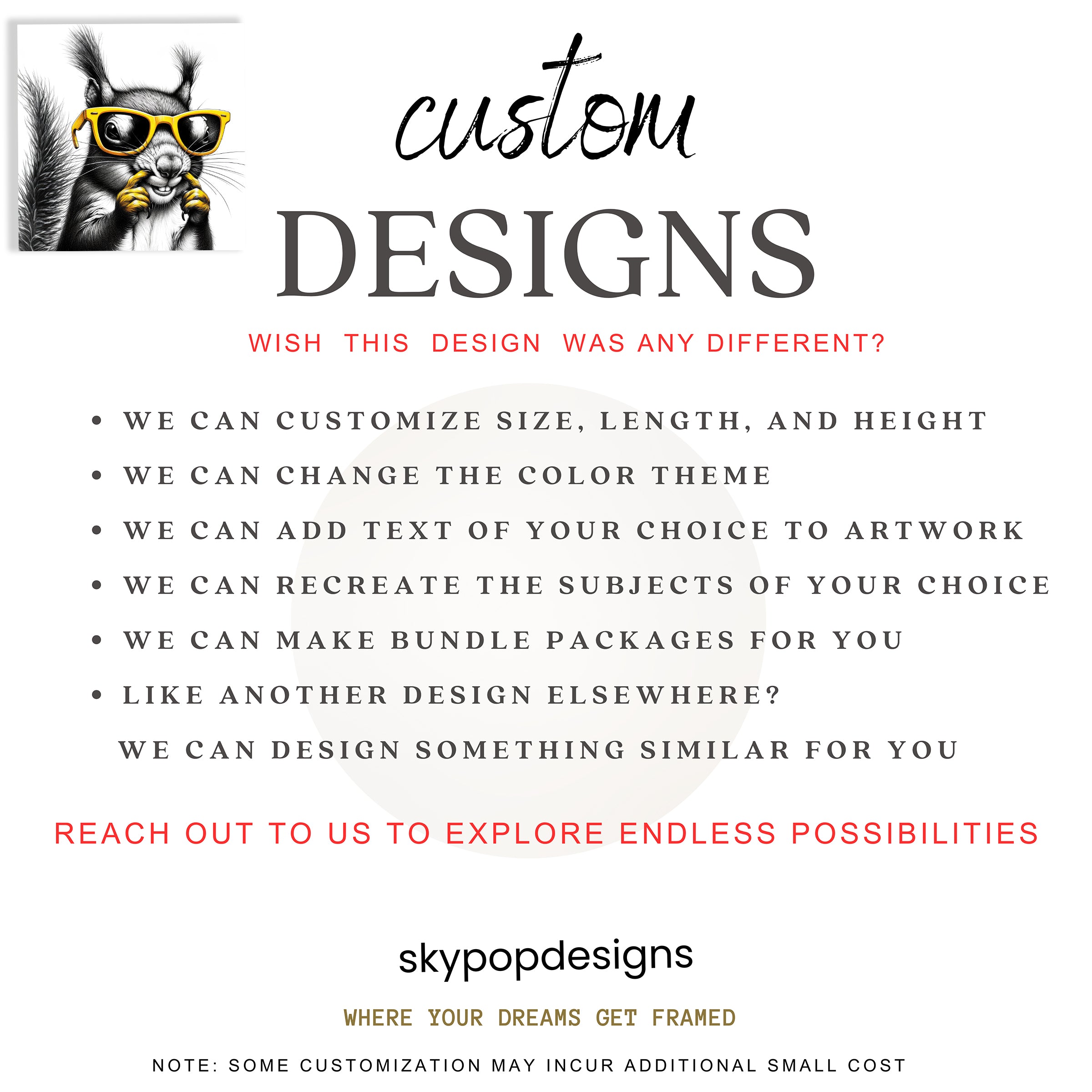 Looking for a custom design, or do you love a particular design but need it in a different size or orientation? Perhaps you've found a design elsewhere and wish for us to create something similar for you? Drop us a message! We're dedicated to meeting your needs and will work closely with you to ensure your vision comes to life.