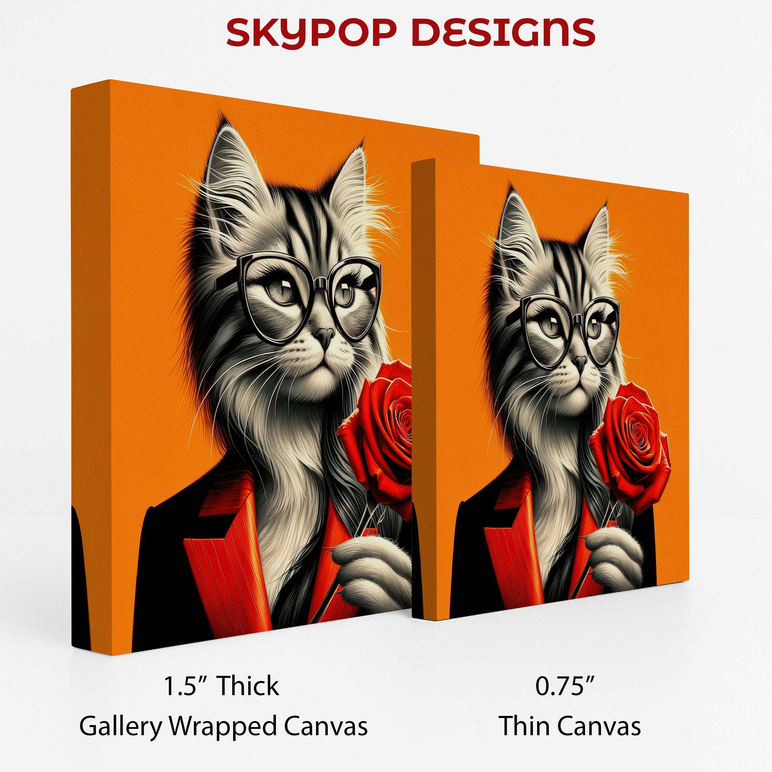 Keywords: Pop Art Cat Art, Contemporary Animal Art, Sophisticated Cat Decor, Modern Living Room Art, Glam Bedroom Decor, Office Wall Art, Cat Lover Gift, Orange Black Red White Art, Rose Animal Poster, Chic Cat Artwork, Playful Charm Art, Bold Orange Background, Modern Home Decor, Entryway Wall Art, Animal Portrait Canvas, Contemporary Interior Design, Unique Wall Decor, Statement Art Piece, High-Quality Canvas Print, Vibrant Color Art, Cat with Rose Illustration, Stylish Feline Art, Art Enthusiast Gift, Housewarming Gift Idea, Birthday Present Decor, Inspiring Wall Statement, Modern Elegance Art, Warm Color Palette, Pet Portrait Art, Creative Wall Accent