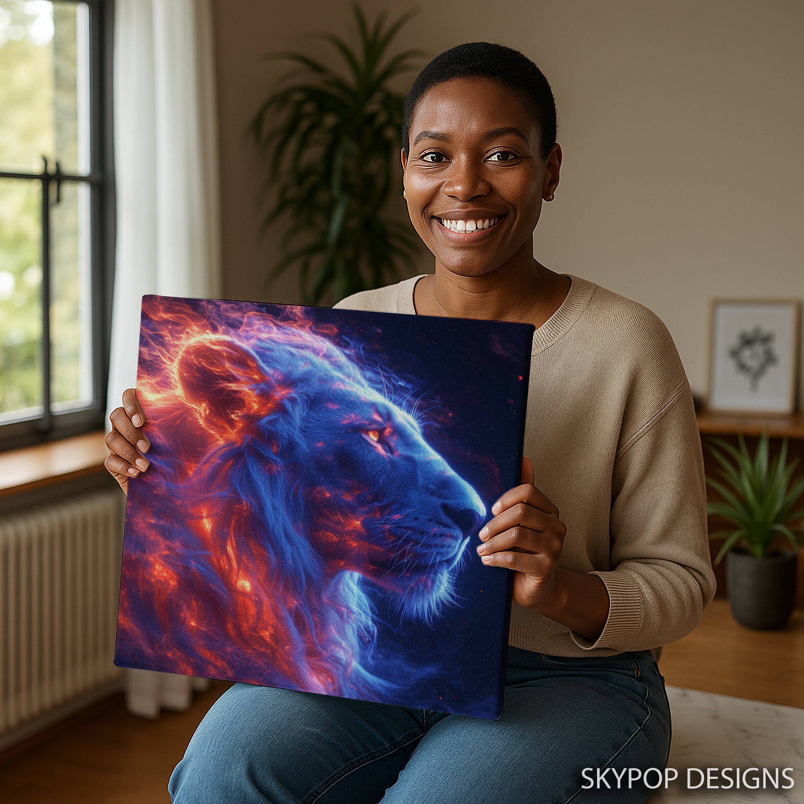 Keywords: Lion Wall Art, Canvas Art, Abstract Art, Nature Art, Animal Art, Contemporary Decor, Modern Decor, Glam Decor, Living Room Art, Bedroom Art, Office Decor, Entryway Art, Blue Art, Red Art, Multicolor Art, Black Art, Fiery Lion, Spirit Lion, Majestic Lion, Lion Poster, Wall Decor, Home Decor, Interior Design, Statement Piece, Bold Art, Expressive Art, Gift for Him, Animal Lover Gift, Home Renovation, Wall Art Prints