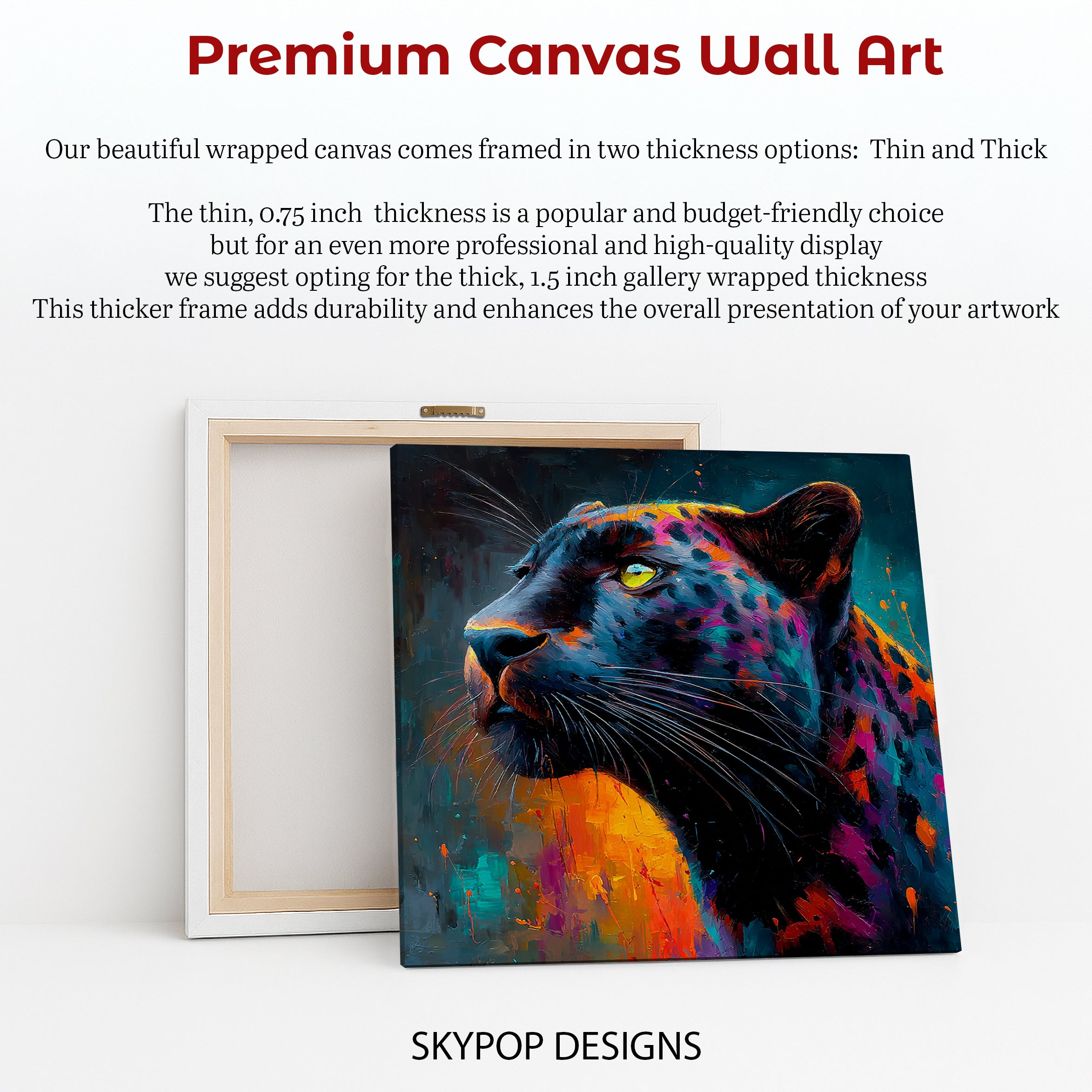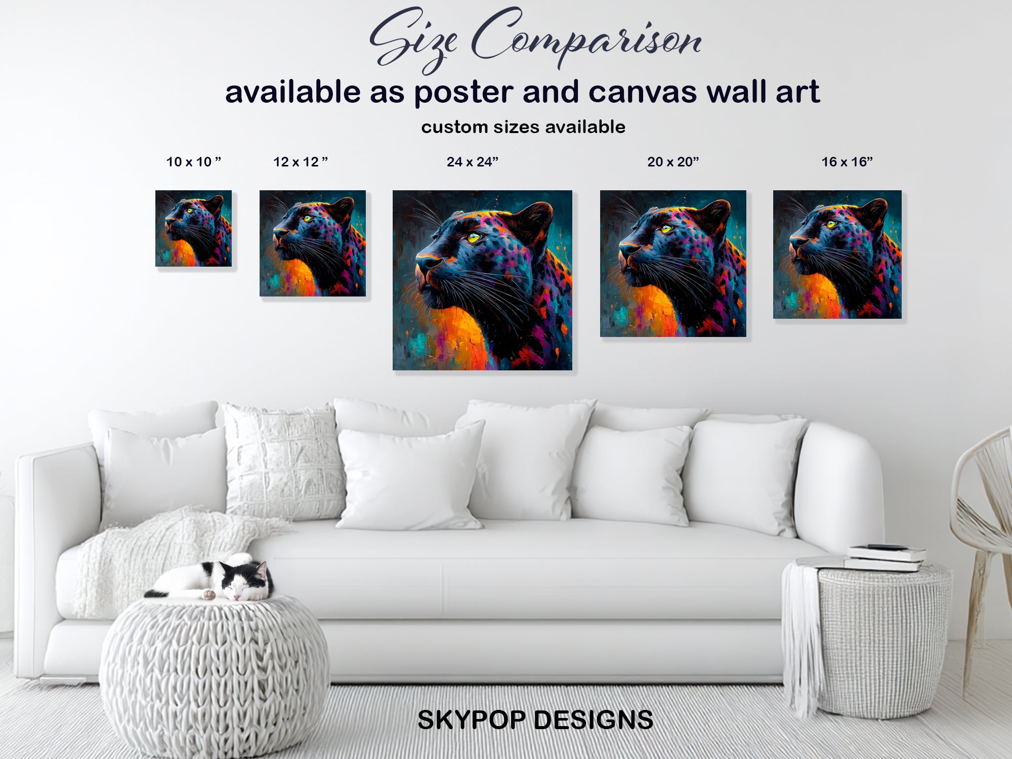 Keywords: Panther Canvas Art, Wild Animal Art, Contemporary Wall Art, Graffiti Art Decor, Modern Home Decor, Bohemian Wall Art, Glam Decor Style, Living Room Art, Bedroom Wall Decor, Office Wall Art, Entryway Art, Multicolor Canvas, Black Panther Art, Orange Teal Pink Art, Vibrant Animal Poster, Statement Wall Art, Bold Artistic Expression, Home Decor Inspiration, Wall Decor for Living Room, Art for Bedroom, Office Decoration, Unique Wall Art, Animal Lover Gift, Masculine Wall Art, Textured Background Art, Energetic Brushstrokes, Color Splatter Art, High-Quality Canvas Print, Art for Modern Interiors, Sophisticated Edgy Decor