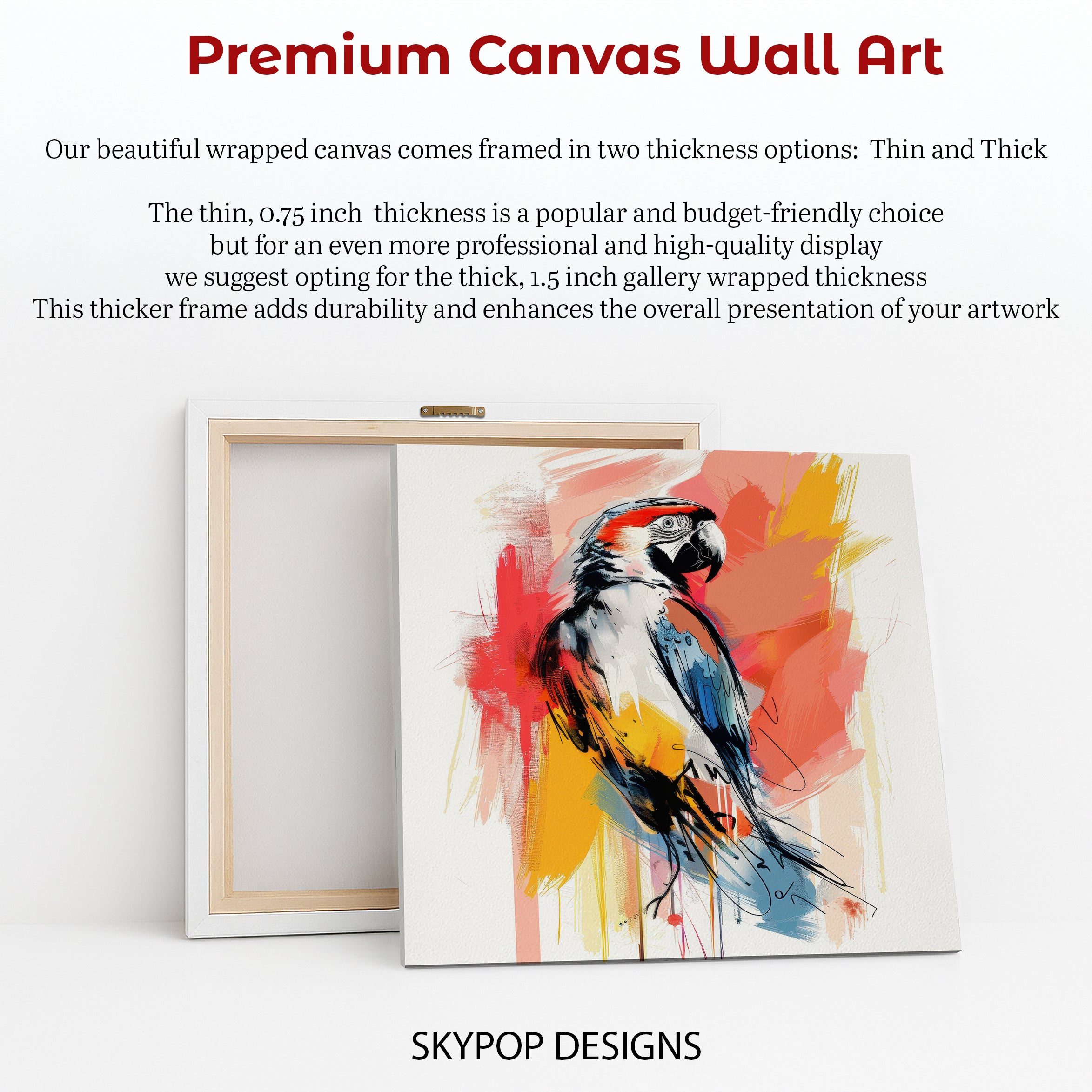 Keywords: Abstract Art, Contemporary Art, Animal Art, Modern Decor, Bohemian Decor, Glam Decor, Living Room Art, Bedroom Art, Office Wall Art, Entryway Decor, Multicolor Art, Red Art, Yellow Art, Blue Art, Parrot Art, Canvas Wall Art, Wall Art Poster, Vibrant Parrot Splash, Abstract Expressionism, Colorful Parrot, Multi-colored Brush Strokes, Bold Color Palette, Textured Brushwork, Joyful Decor, Creative Art, Exotic Decor, Unique Wall Art, Art Collectors Gift, Housewarming Gift, Nature Lovers Gift