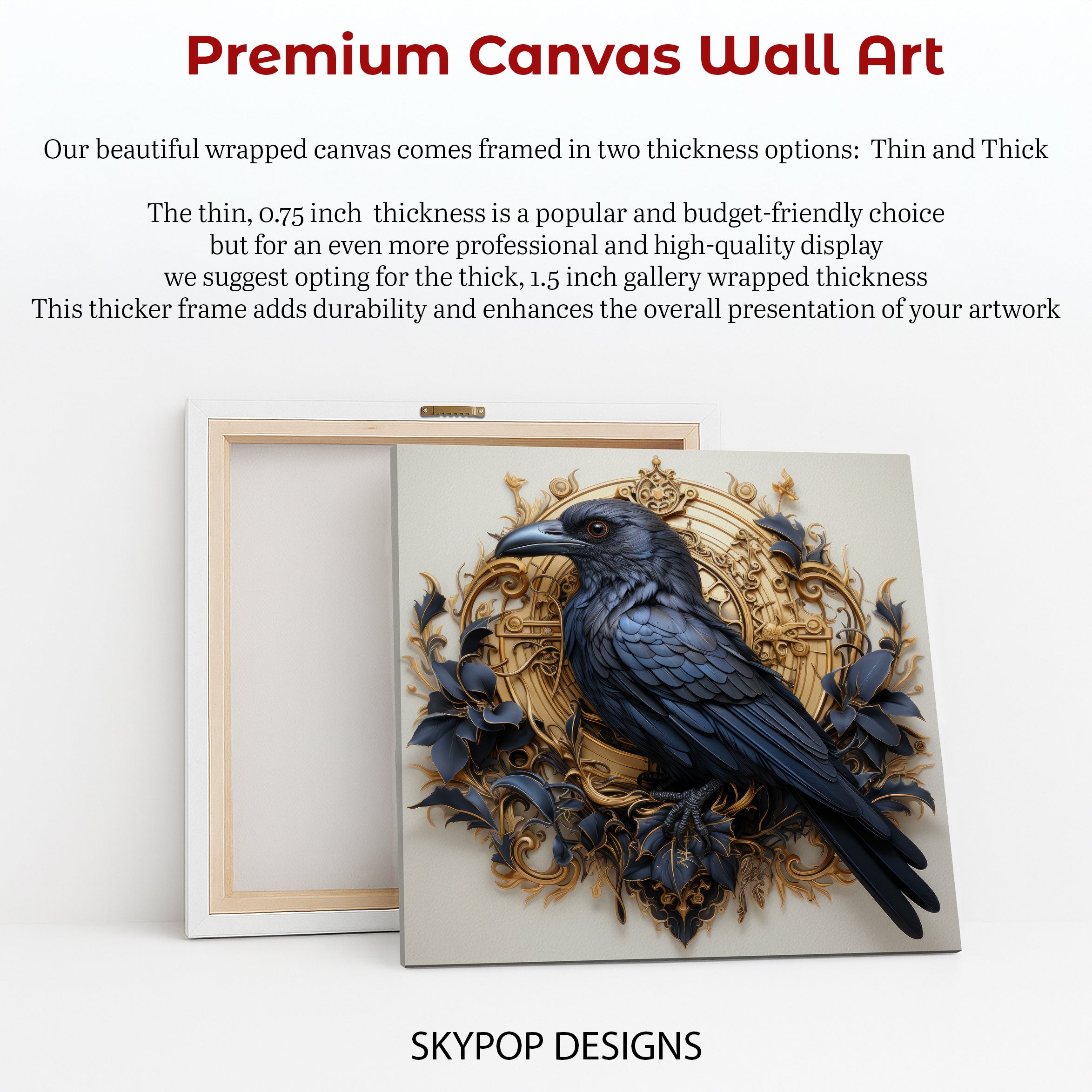Keywords: Raven Canvas Art, Abstract Wall Art, Majestic Raven Emblem, Contemporary Art, Nature Inspired Art, Modern Decor, Glam Decor, Traditional Decor, Living Room Wall Art, Entryway Decor, Bedroom Art, Office Wall Art, Black Gold Art, Navy Gold Art, Multicolor Canvas Print, Dark Elegance Decor, Sophisticated Wall Art, Dramatic Artwork, Eye-Catching Visuals, Luxurious Home Decor, Timeless Wall Art, Statement Piece Art, Housewarming Gift Idea, Birthday Gift Art, Animal Wall Art, Raven Print Gift, Mysterious Art Piece, Wisdom Symbol Art, Premium Canvas Art, Home Gallery Addition