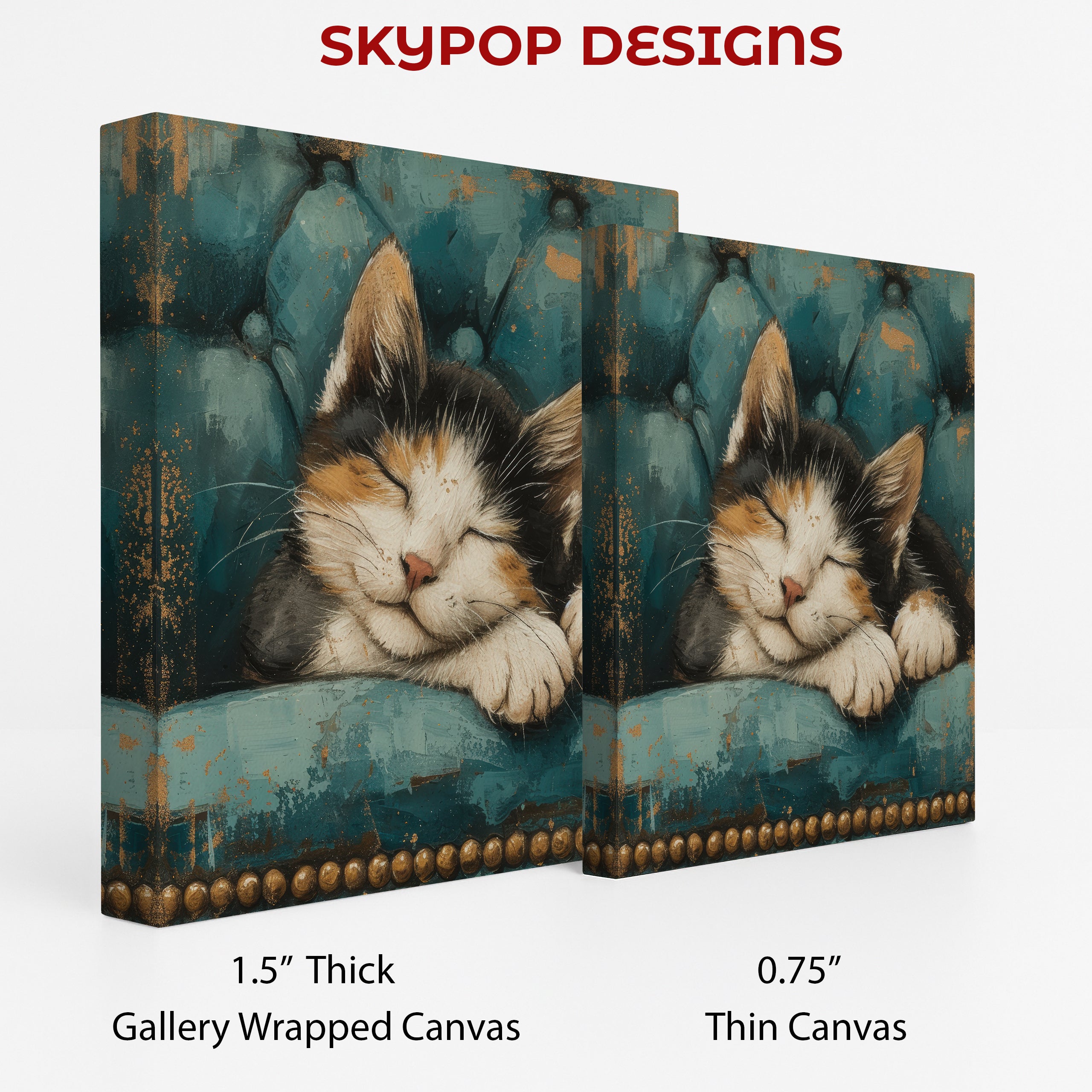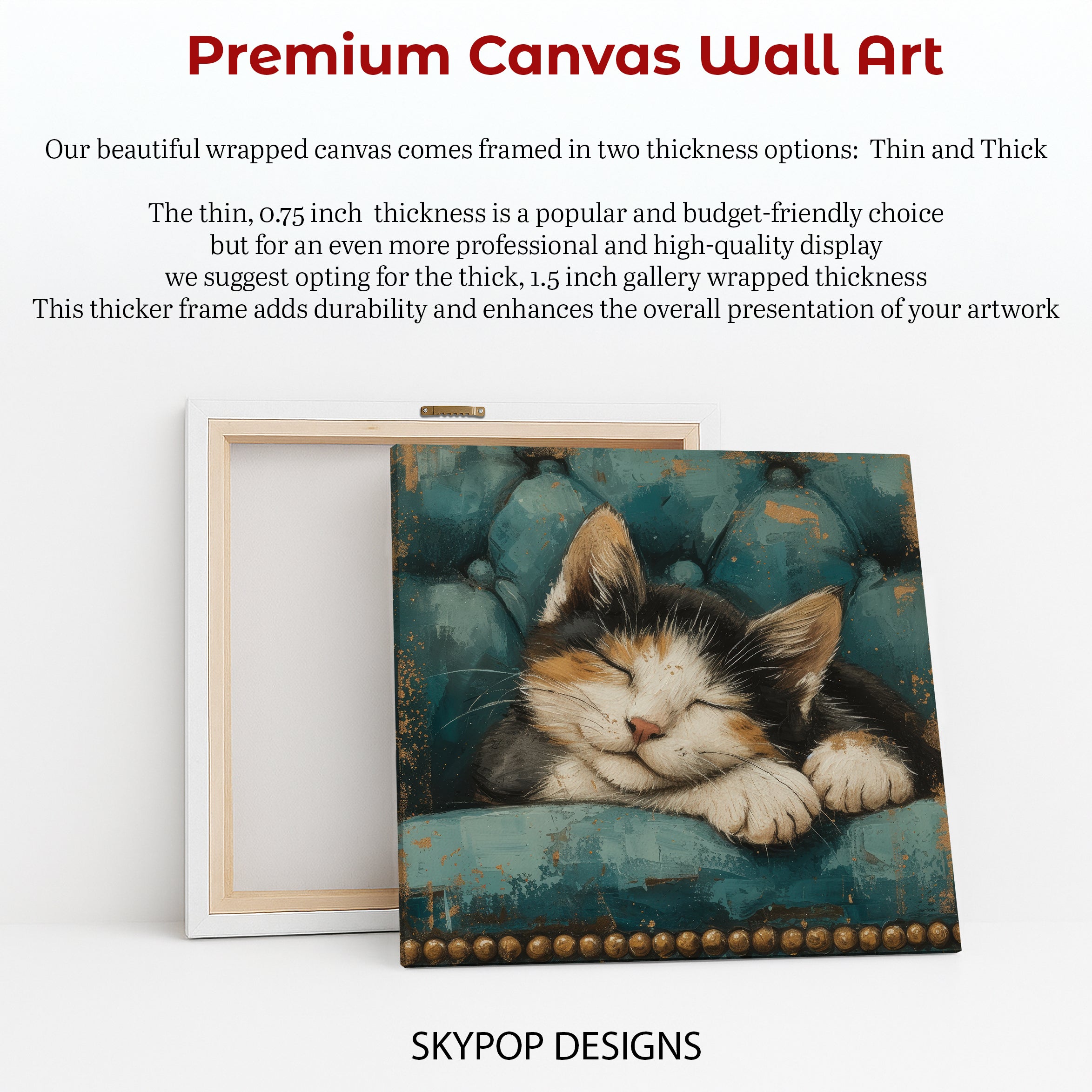 Keywords: Calico Cat Art, Sleeping Cat Canvas, Teal Gold Wall Art, Modern Cat Decor, Contemporary Animal Art, Glam Living Room Art, Luxury Home Decor, Entryway Wall Art, Bedroom Canvas Print, Peaceful Cat Art, Tranquil Wall Decor, Cozy Cat Poster, Multicolor Art Print, High-Quality Canvas, Modern Interior Design, Abstract Cat Art, Pet Lover Gift, Housewarming Gift, Animal Lover Gift, Sophisticated Home Accents, Elegant Wall Decor, Plush Sofa Art, Teal Home Decor, Cat Themed Art, Interior Design Inspiration, Wall Art for Sale, Home Enhancement, Statement Wall Art, Artistic Home Decor, Cozy Bedroom Accents