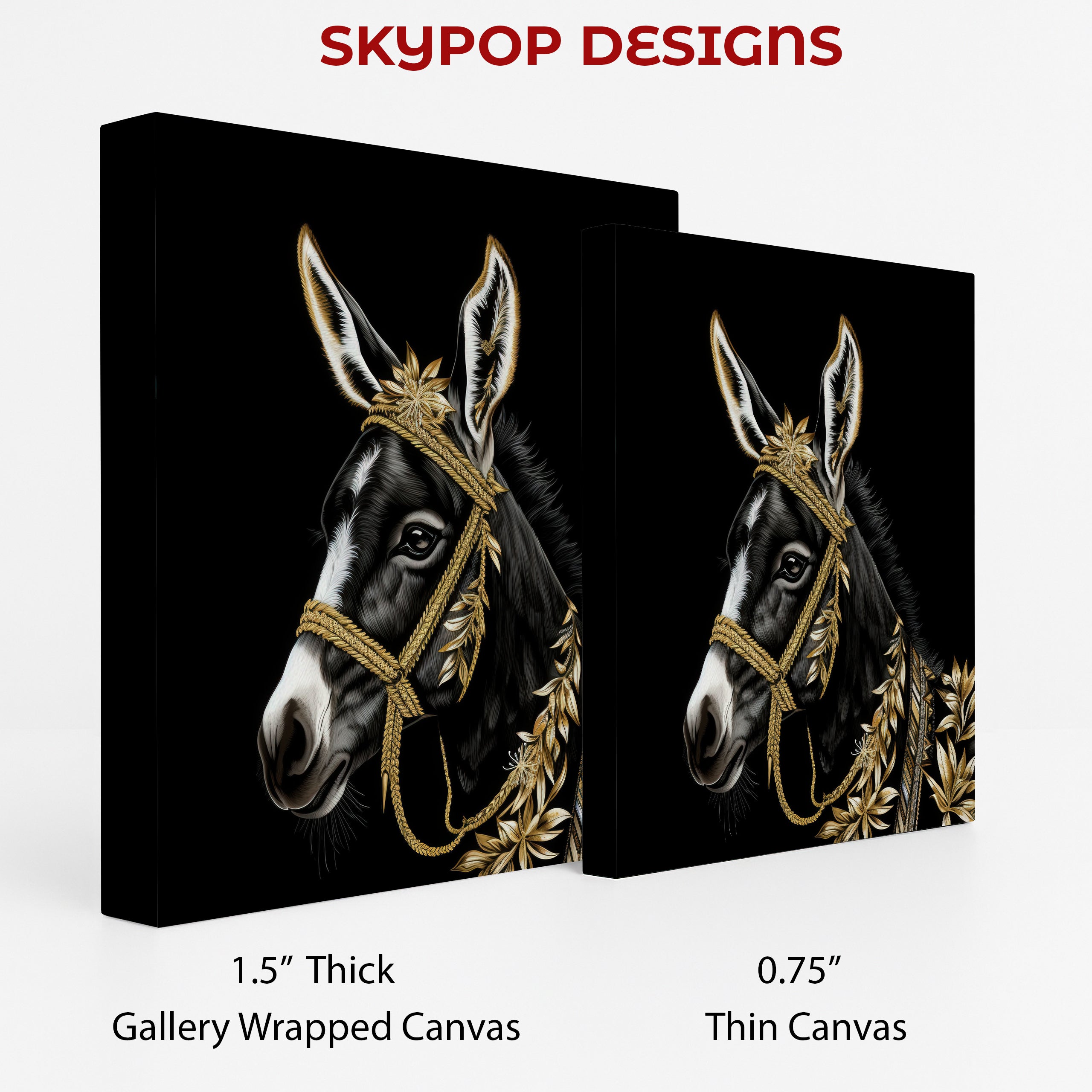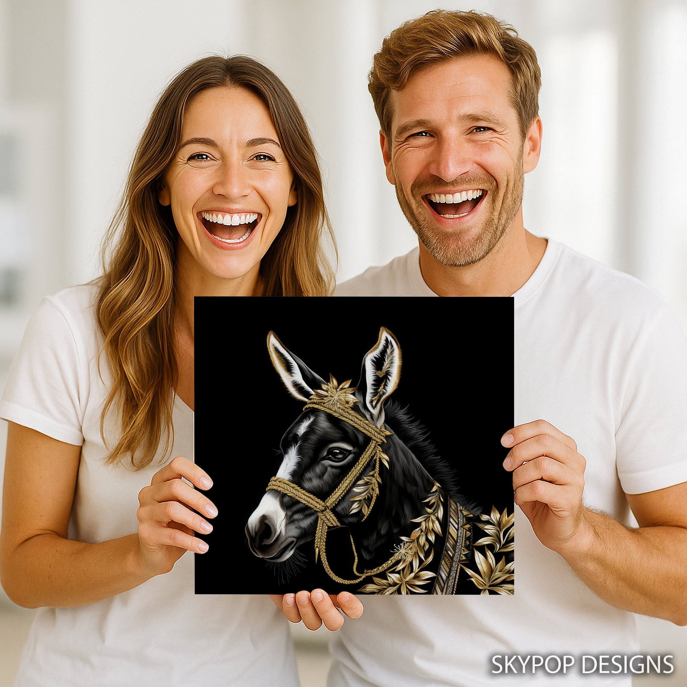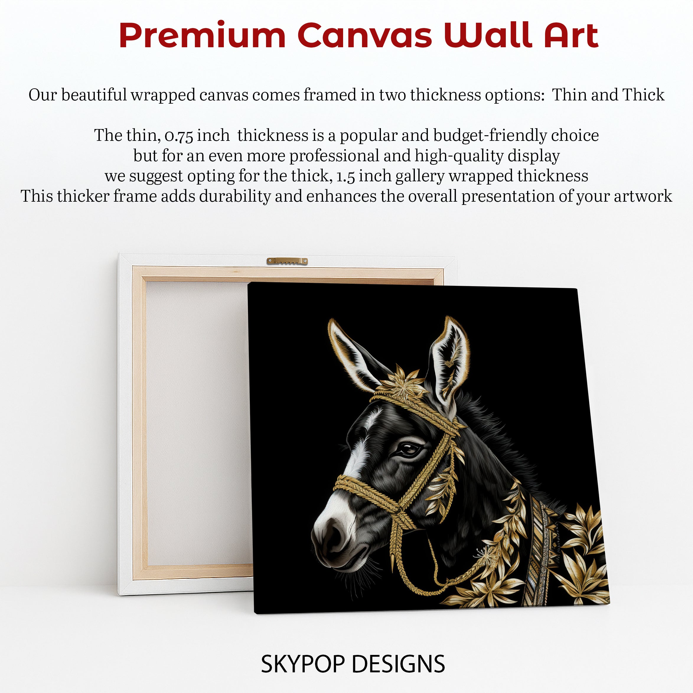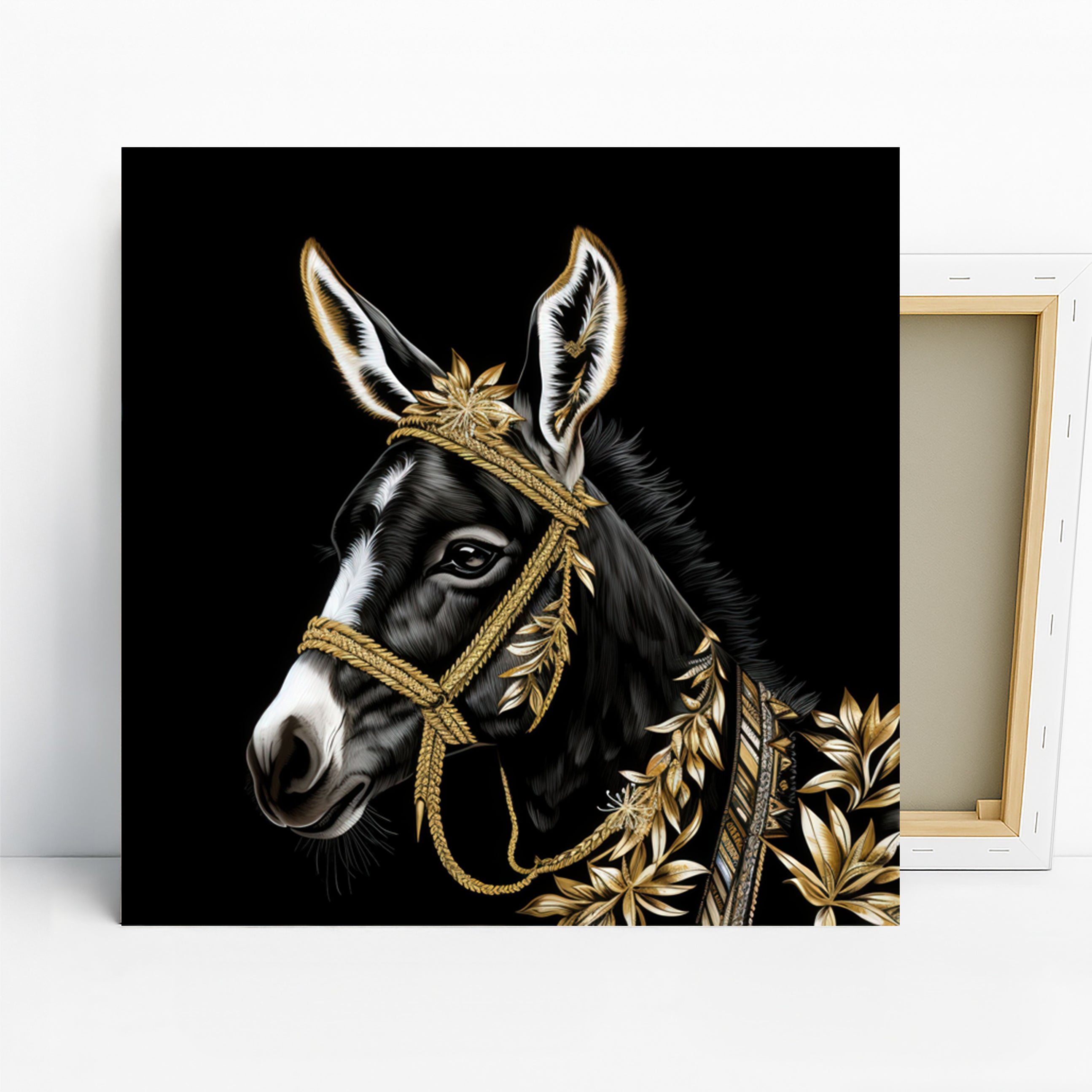Keywords: Donkey Wall Art, Gold Donkey Art, Black and Gold Art, Animal Canvas Art, Majestic Donkey Painting, Art Nouveau Decor, Glam Home Decor, Contemporary Art Print, Traditional Wall Art, Living Room Art, Bedroom Wall Decor, Entryway Art, Dining Room Art, Gold Crown Art, Animal Lover Gift, Luxury Wall Art, Statement Artwork, Sophisticated Decor, Opulent Design, Elegant Wall Art, Black Background Art, Gold Detailing, Canvas Wall Art, Home Decor Print, Modern Wall Art, Animal Art Poster, Unique Home Decor, High-Quality Art, Rich Gold Accents, Donkey Art Print