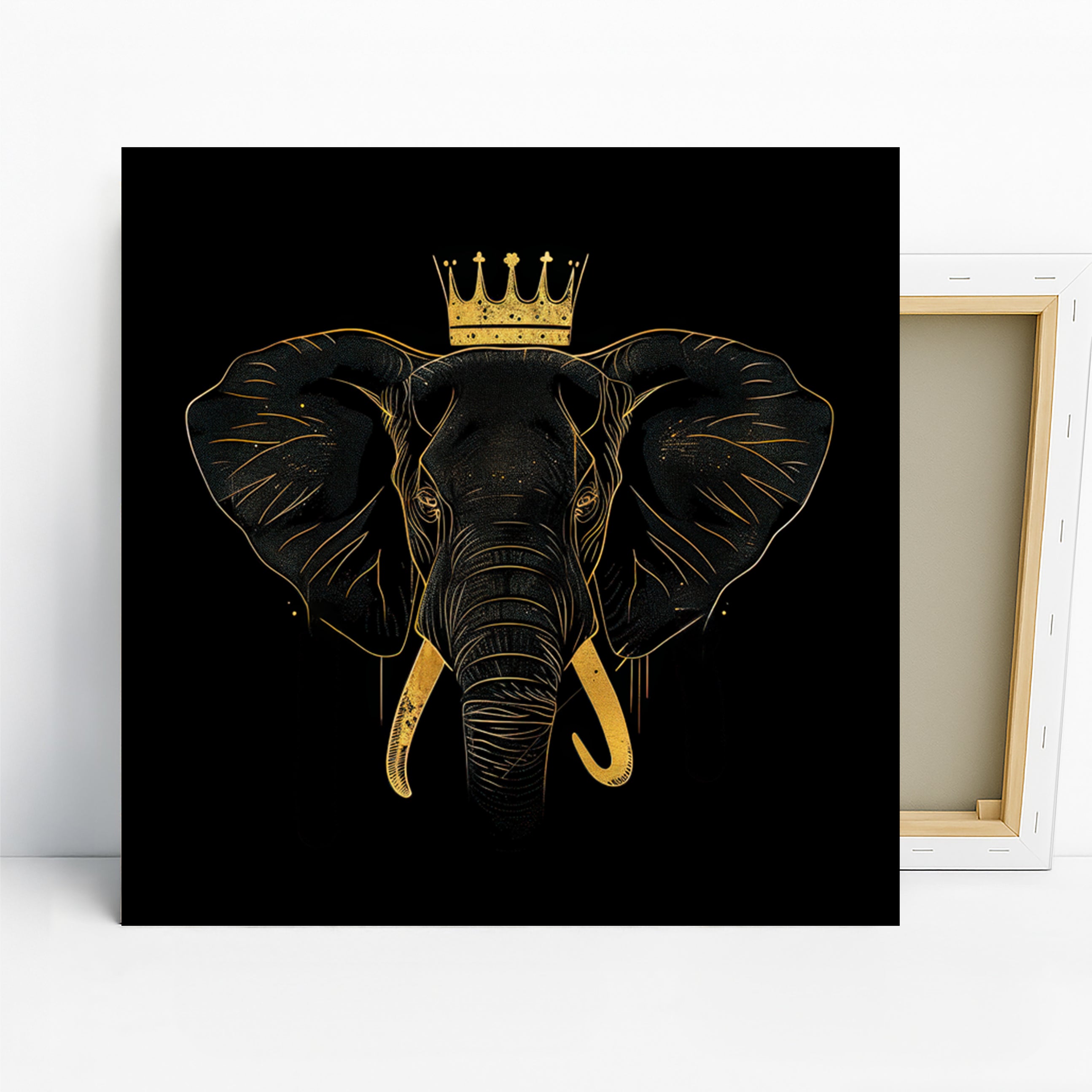 Keywords: Abstract Canvas Art, Contemporary Wall Art, Animal Art Print, Elephant Art, Lion Art, Regal Elephant Canvas, Crown Elephant Decor, Black Gold Art, White Gold Accent, Multicolor Art, Modern Home Decor, Minimalist Decor, Glam Interior Design, Living Room Art, Bedroom Wall Art, Office Decor, Entryway Art, Statement Wall Art, Luxurious Artwork, Sophisticated Decor, Power Symbol Art, Royalty Art, Inspiring Home Decor, Chic Loft Style, Statement Office Piece, High-Quality Canvas, Metallic Gold Accents, Unique Animal Art, Gift for Animal Lovers, Bold Modern Decor
